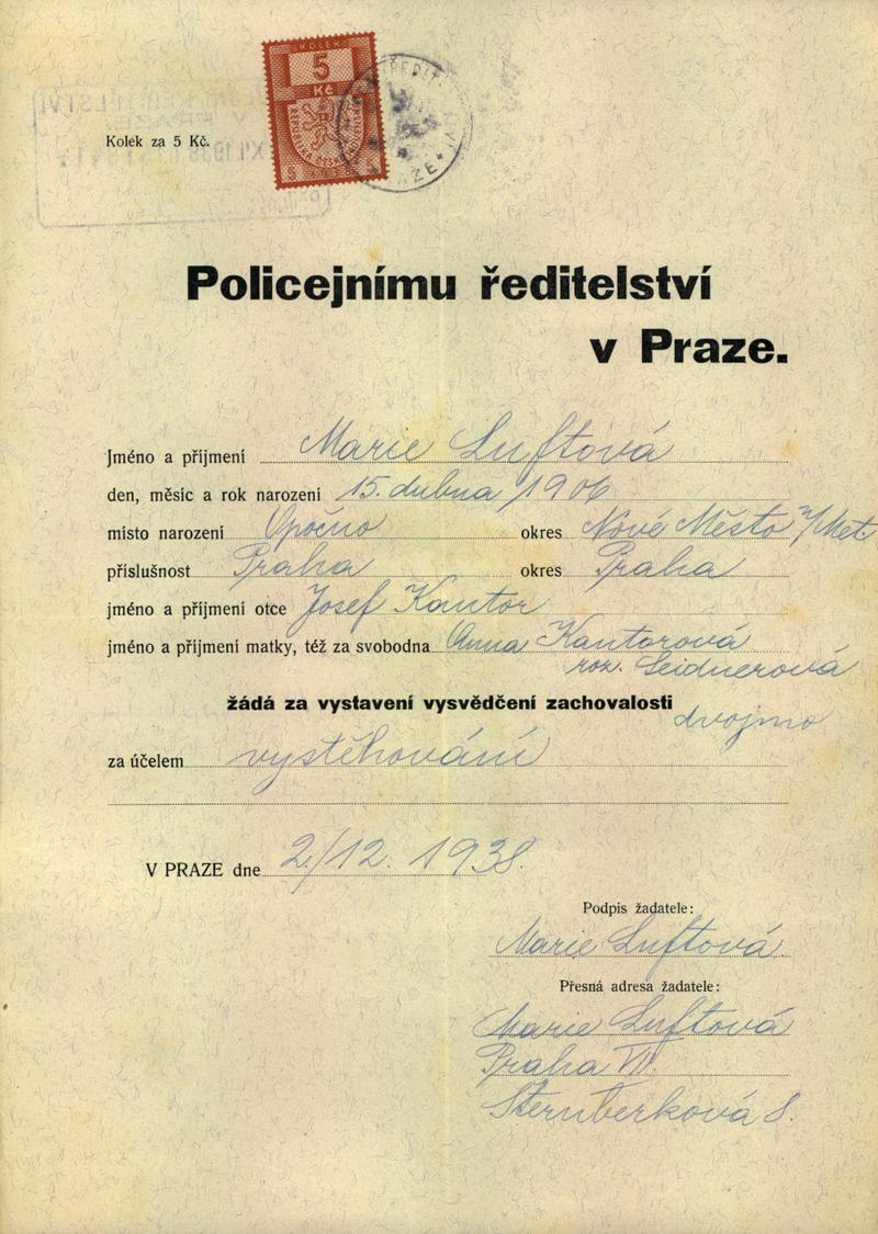 Národní archiv Praha > Policejní ředitelství v Praze > 1931-1940 > L > Luftová Marie