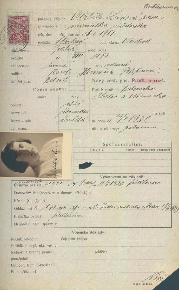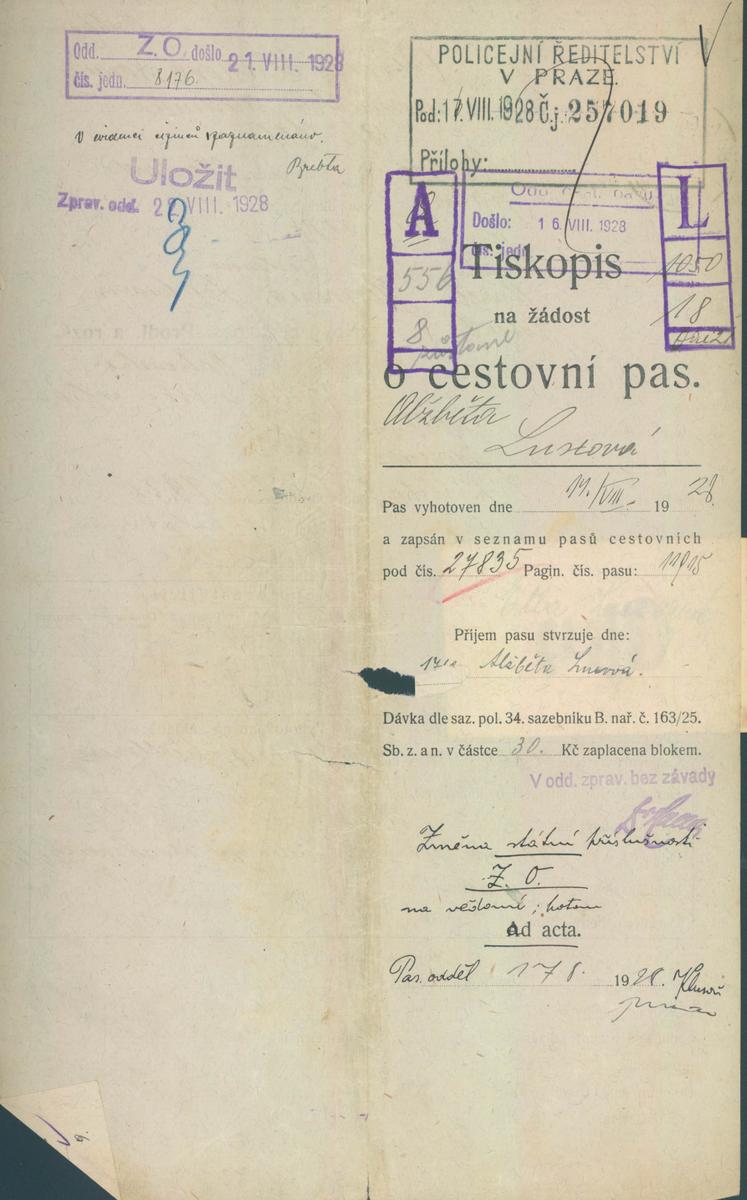 Národní archiv Praha > Policejní ředitelství v Praze > 1931-1940 > L > Luxová Alžběta