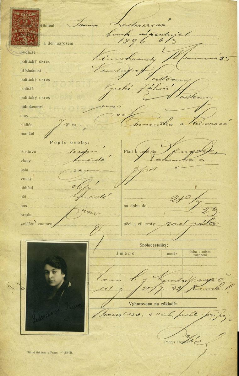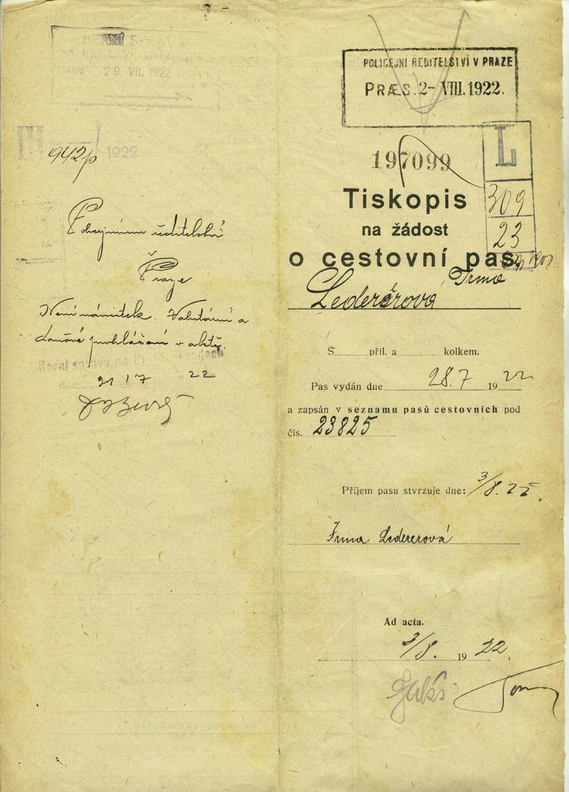 Národní archiv Praha > Policejní ředitelství v Praze > 1931-1940 > L > Ledererová Irma