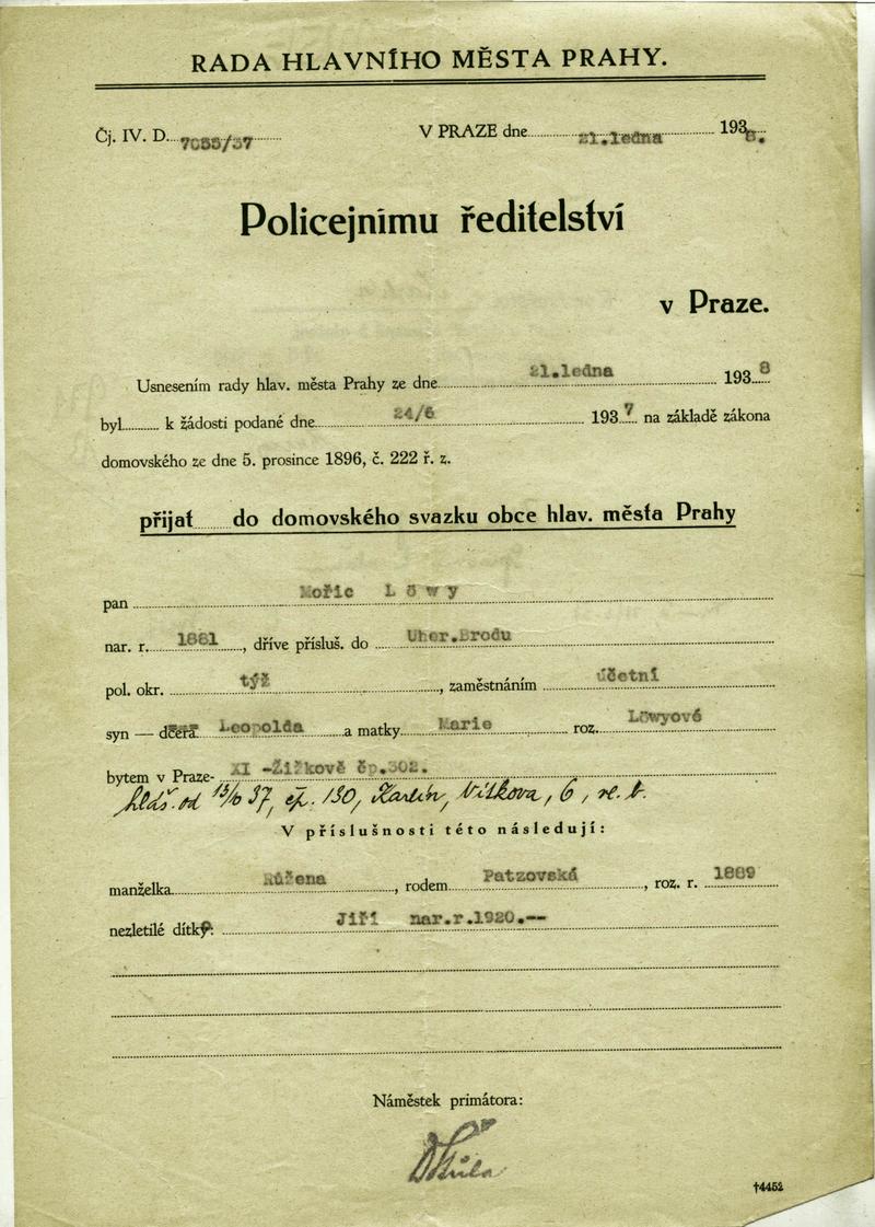 Národní archiv Praha > Policejní ředitelství v Praze > 1931-1940 > L > Löwy Mořic