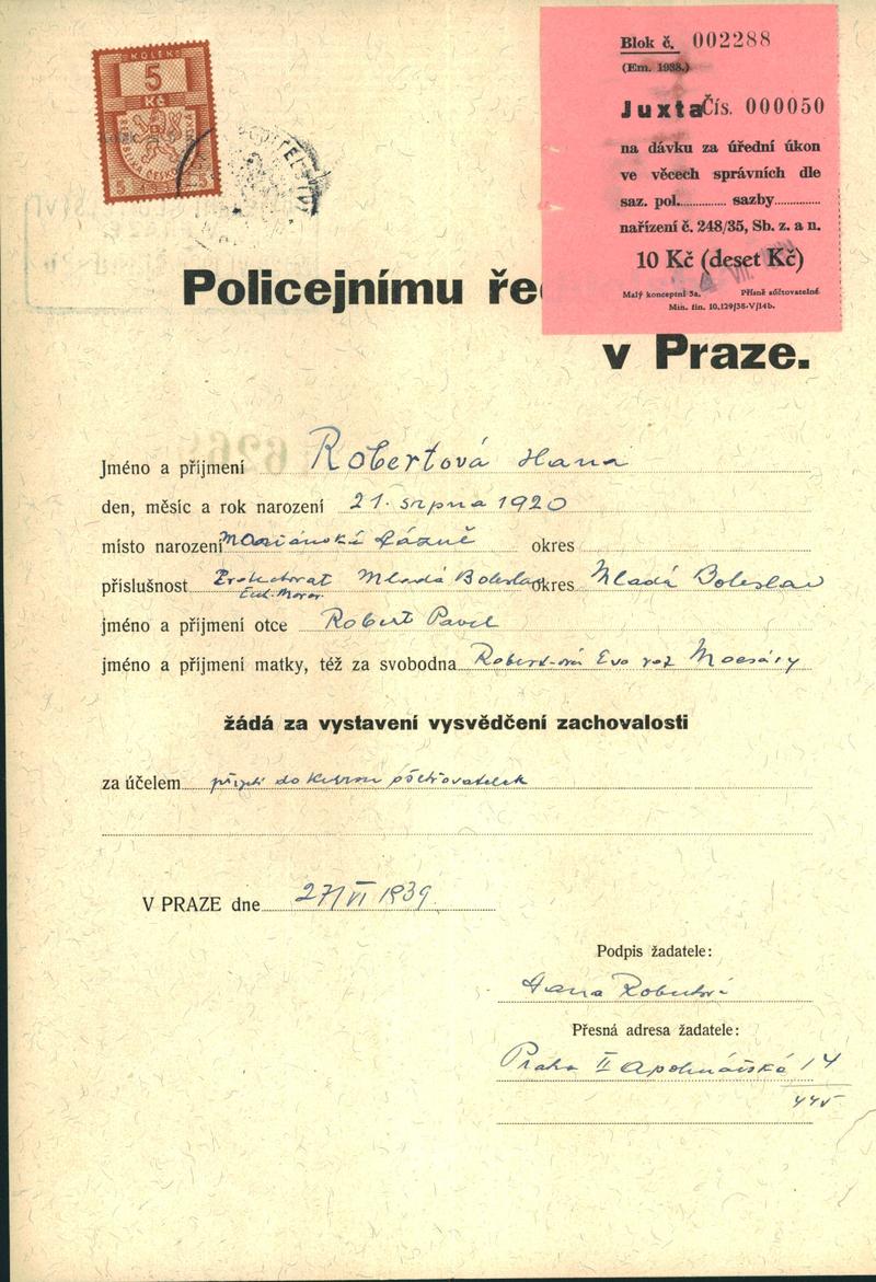 Národní archiv Praha > Policejní ředitelství v Praze > 1931-1940 > R > Robertová Hana