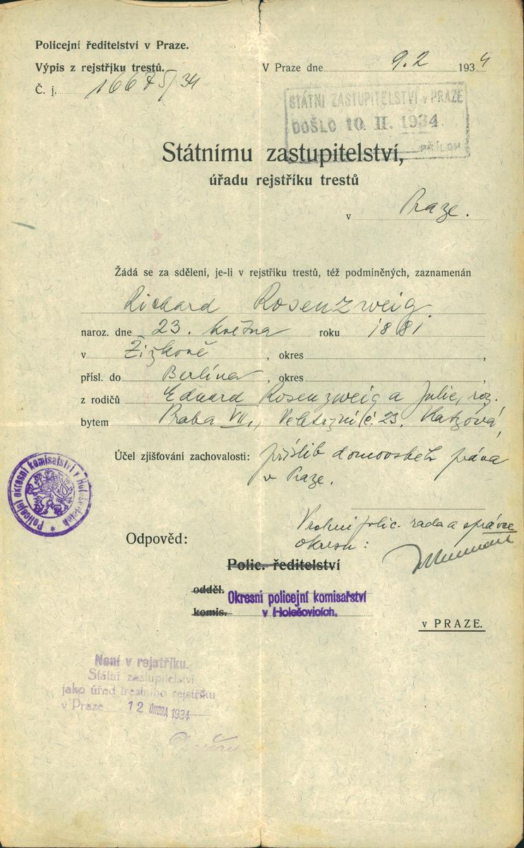 Národní archiv Praha > Policejní ředitelství v Praze > 1931-1940 > R > Rosenzweig Richard