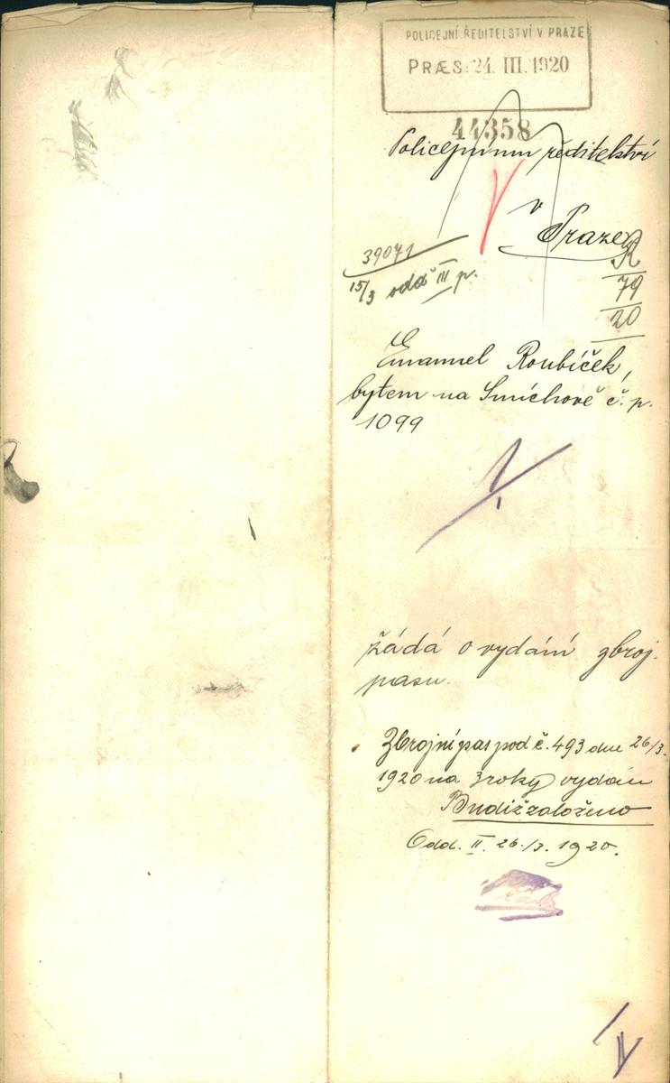 Národní archiv Praha > Policejní ředitelství v Praze > 1931-1940 > R > Roubiček Emanuel