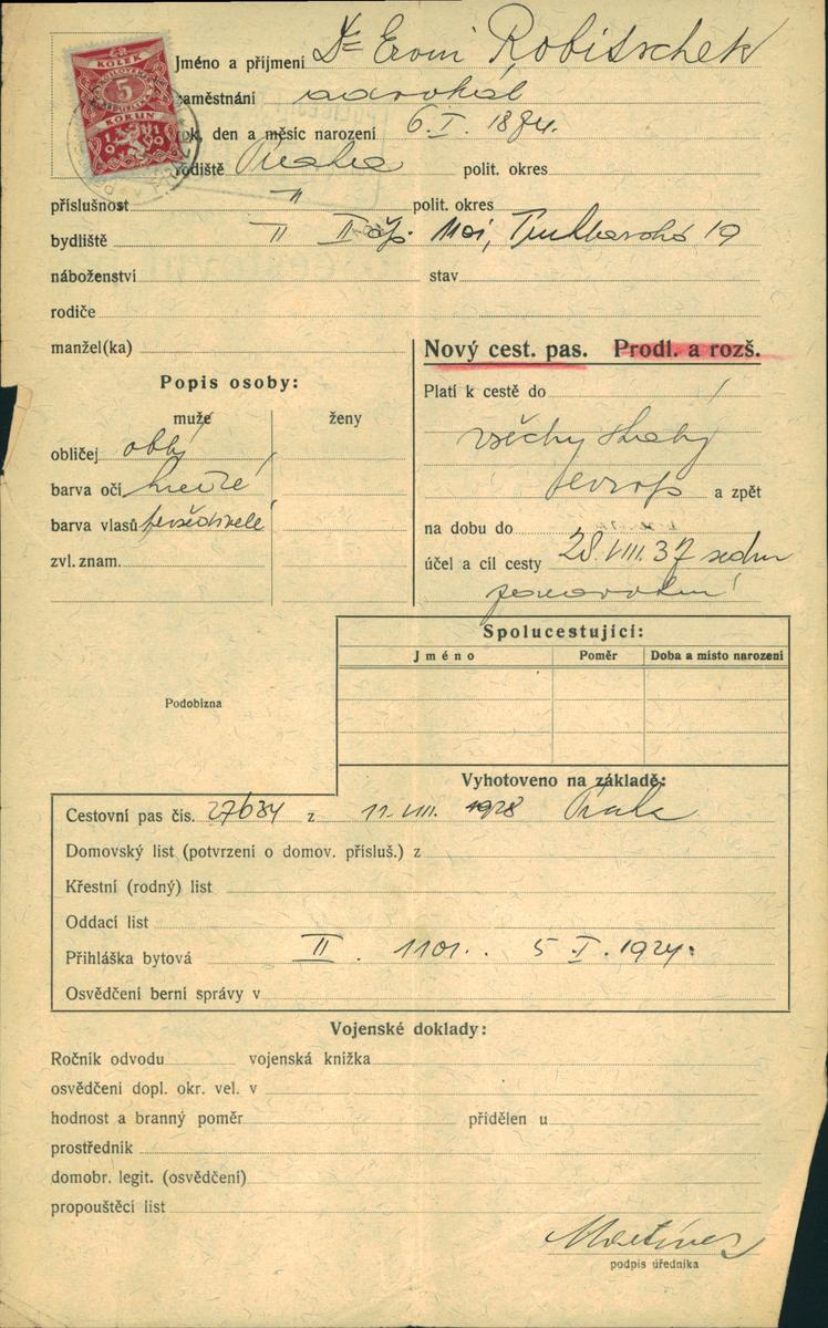 Národní archiv Praha > Policejní ředitelství v Praze > 1931-1940 > R > Robitschek Erwin