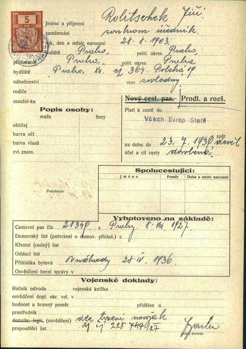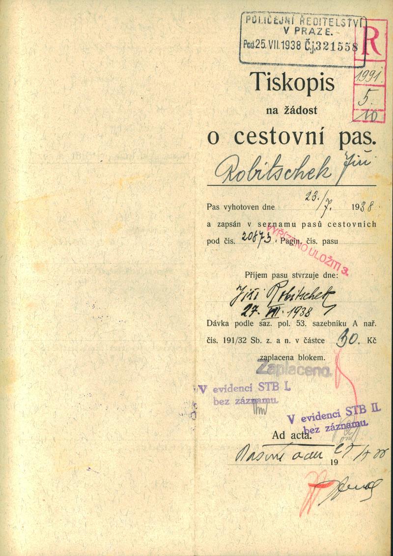 Národní archiv Praha > Policejní ředitelství v Praze > 1931-1940 > R > Robitschek Jiří