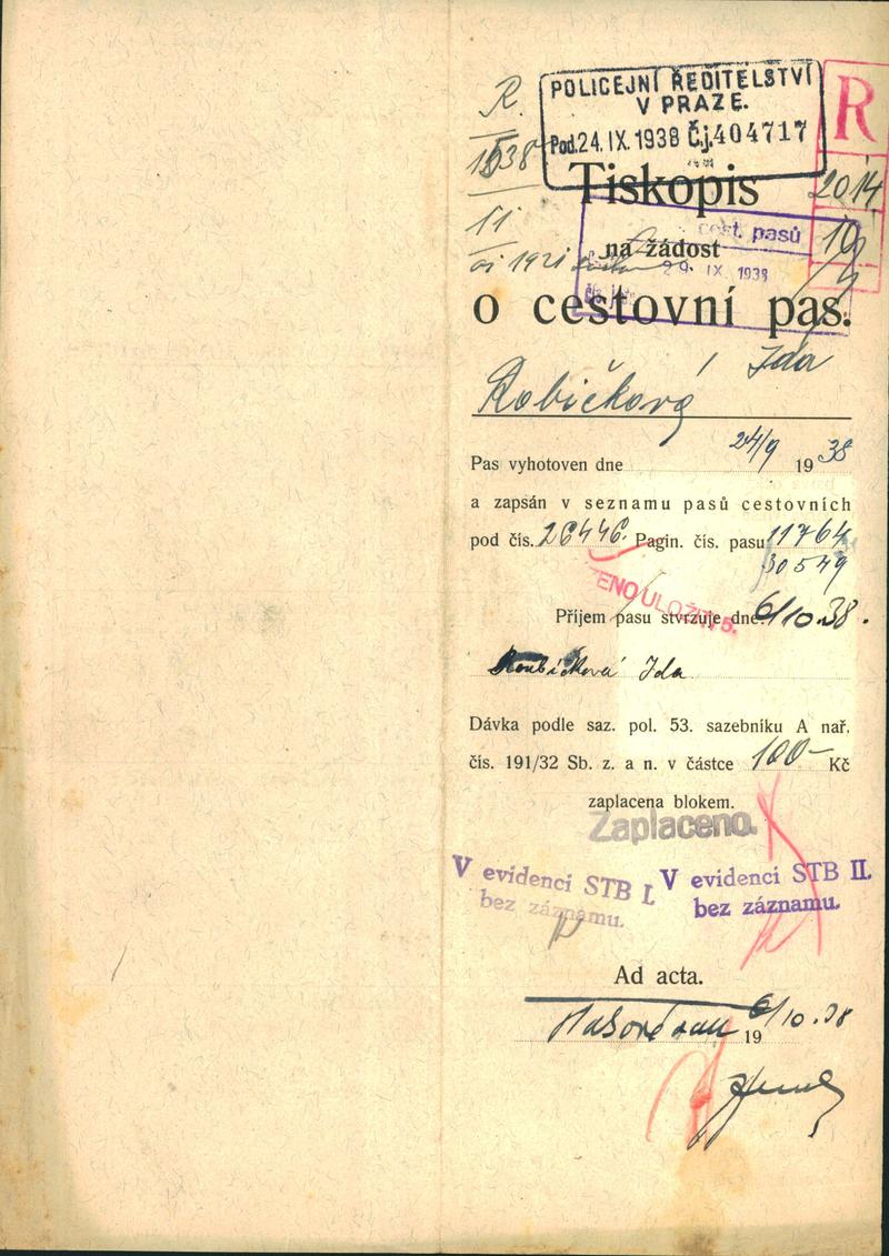 Národní archiv Praha > Policejní ředitelství v Praze > 1931-1940 > R > Roubičková Ida