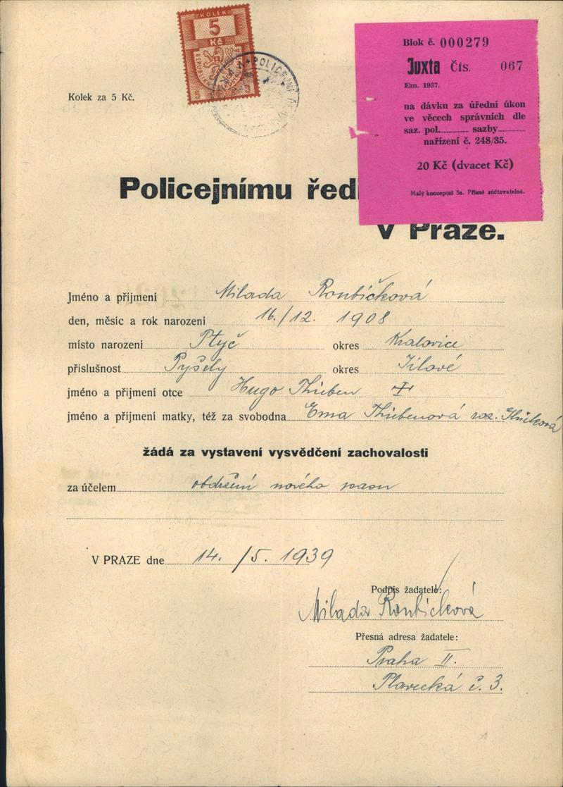 Národní archiv Praha > Policejní ředitelství v Praze > 1931-1940 > R > Roubičková Milada