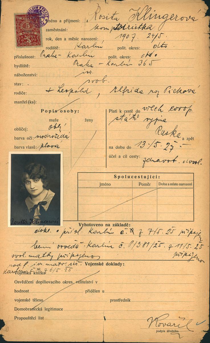 Národní archiv Praha > Policejní ředitelství v Praze > 1931-1940 > R > Rudolfová Rositta