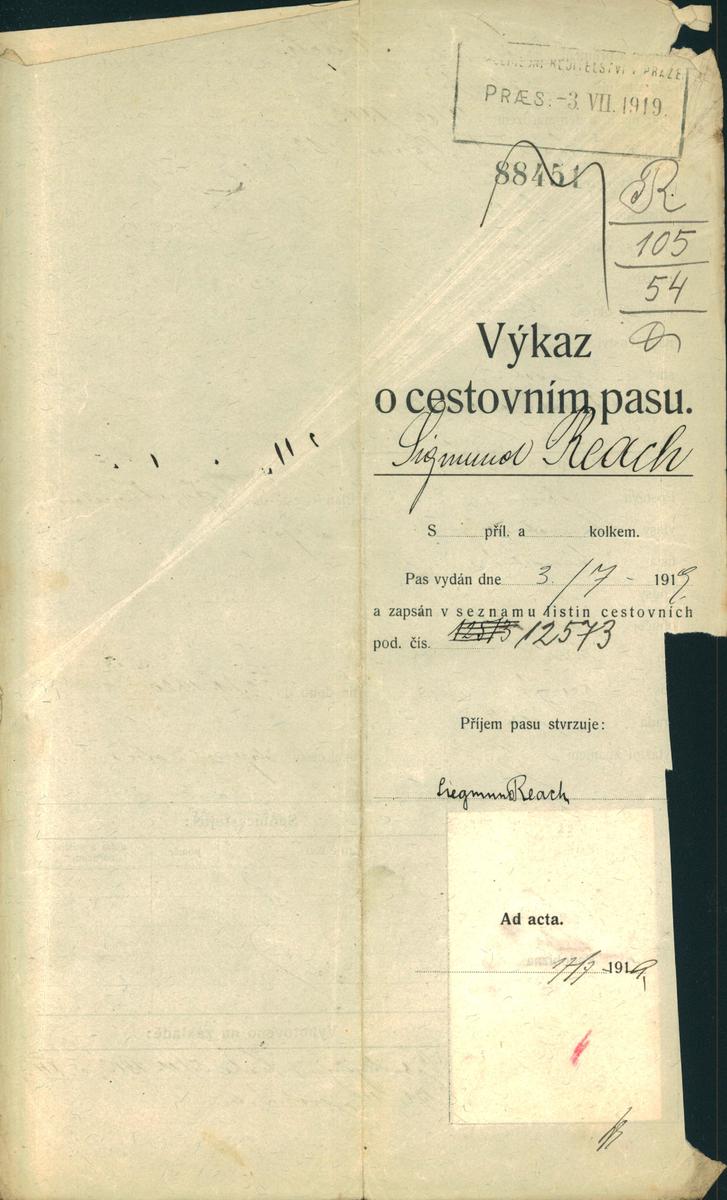 Národní archiv Praha > Policejní ředitelství v Praze > 1931-1940 > R > Reach Zikmund