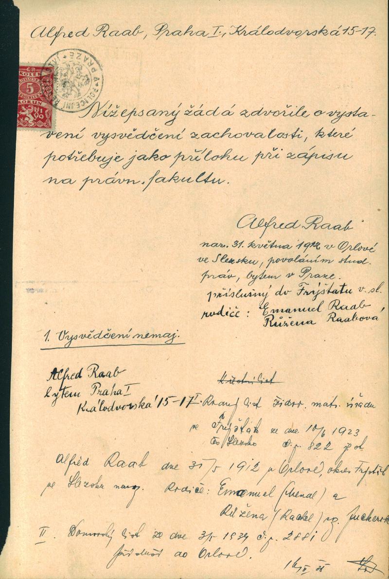 Národní archiv Praha > Policejní ředitelství v Praze > 1931-1940 > R > Raab Alfred