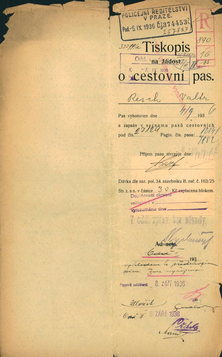 Národní archiv Praha > Policejní ředitelství v Praze > 1941-1950 > R > Resch Valtr