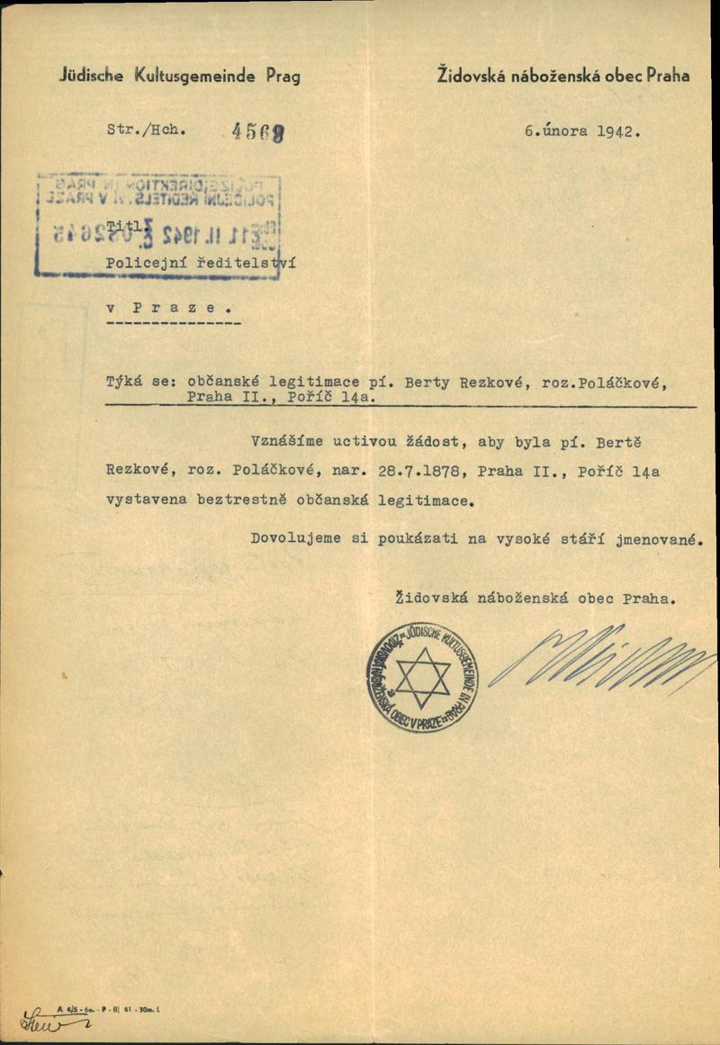 Národní archiv Praha > Policejní ředitelství v Praze > 1941-1950 > R > Rezková Berta