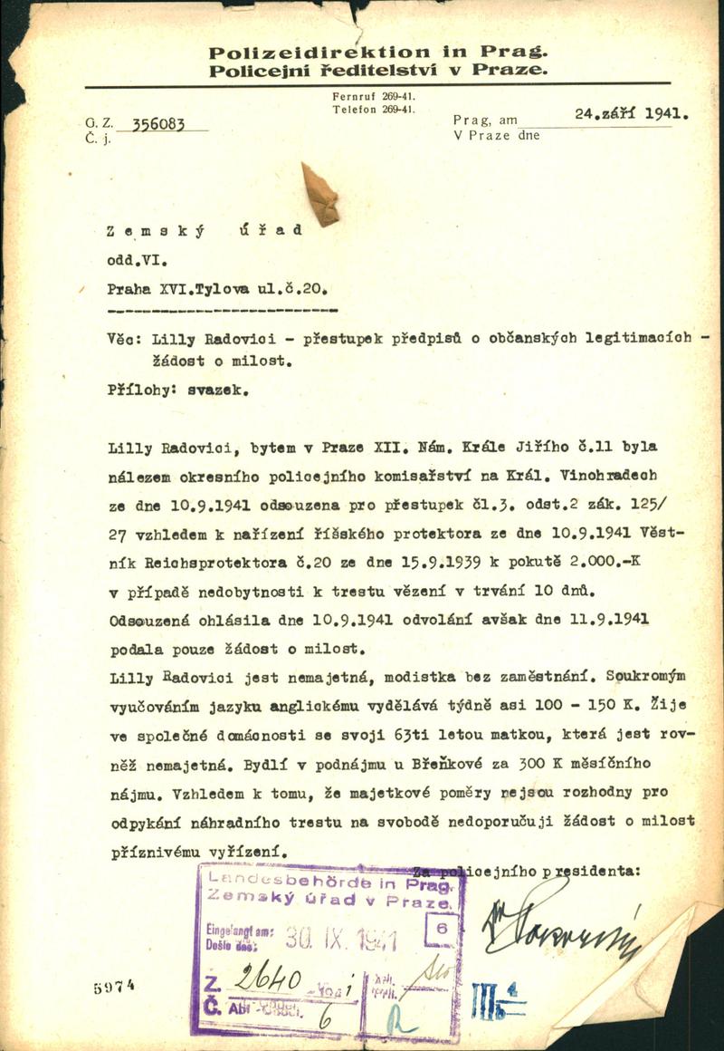 Národní archiv Praha > Policejní ředitelství v Praze > 1941-1950 > R > Radoviciová Lily