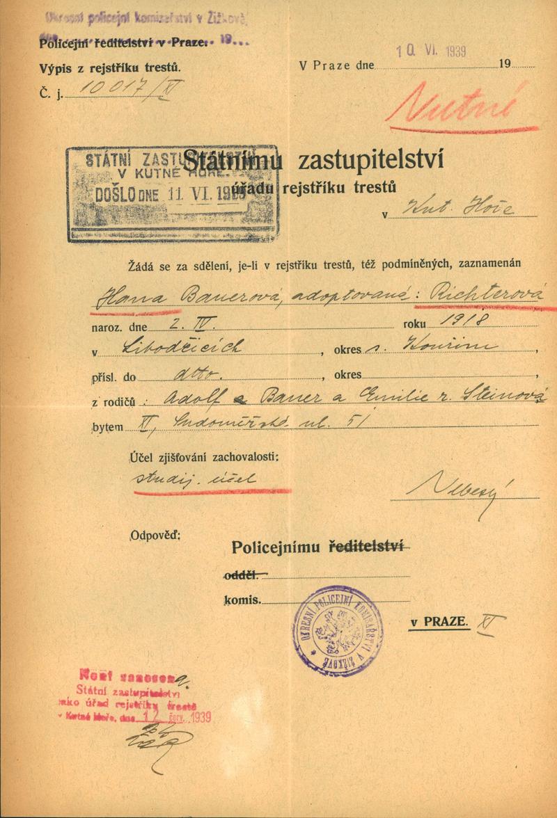 Národní archiv Praha > Policejní ředitelství v Praze > 1941-1950 > R > Richterová Hana