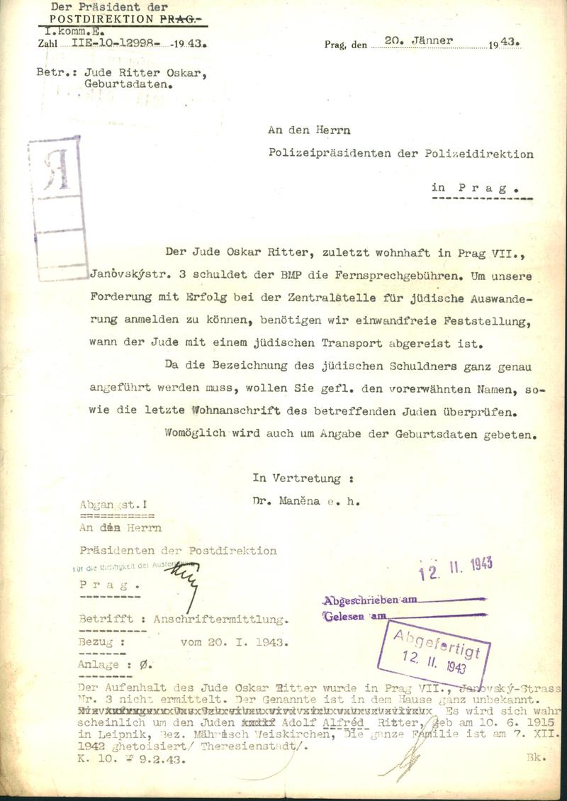 Národní archiv Praha > Policejní ředitelství v Praze > 1941-1950 > R > Ritter Oskar