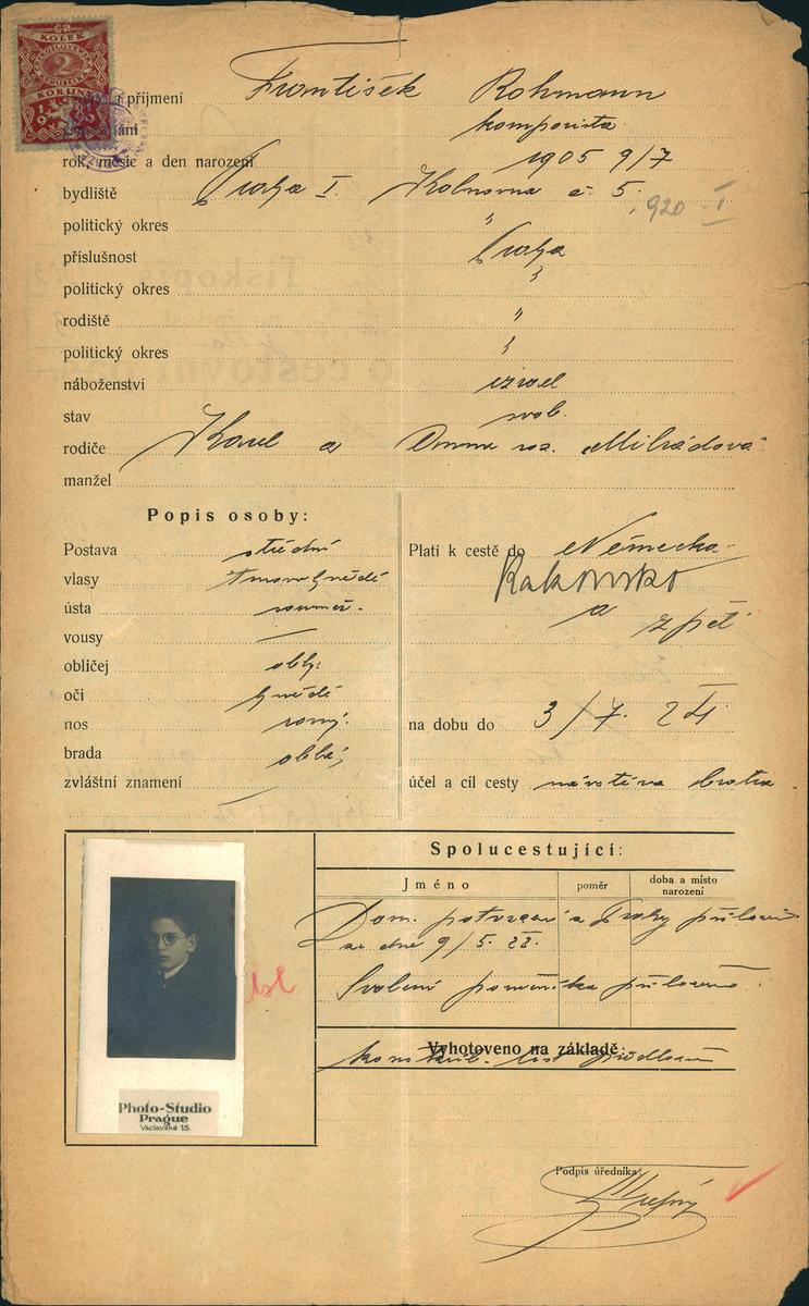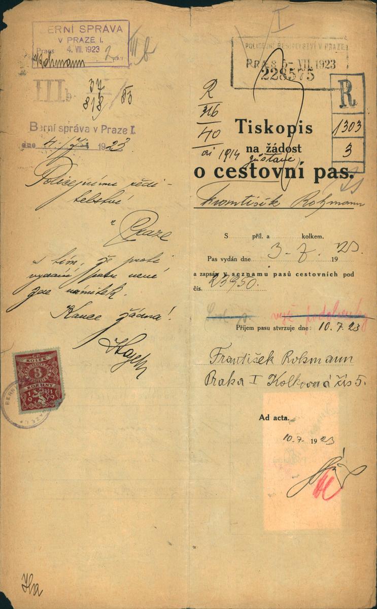 Národní archiv Praha > Policejní ředitelství v Praze > 1941-1950 > R > Rohmann František