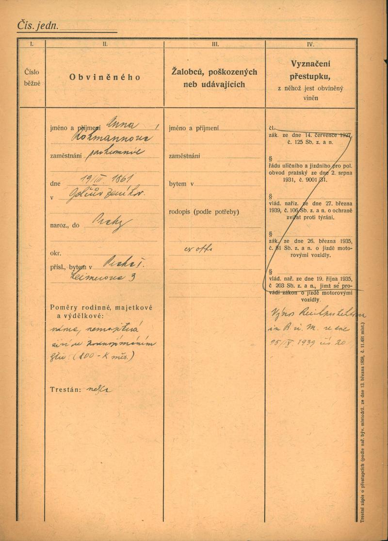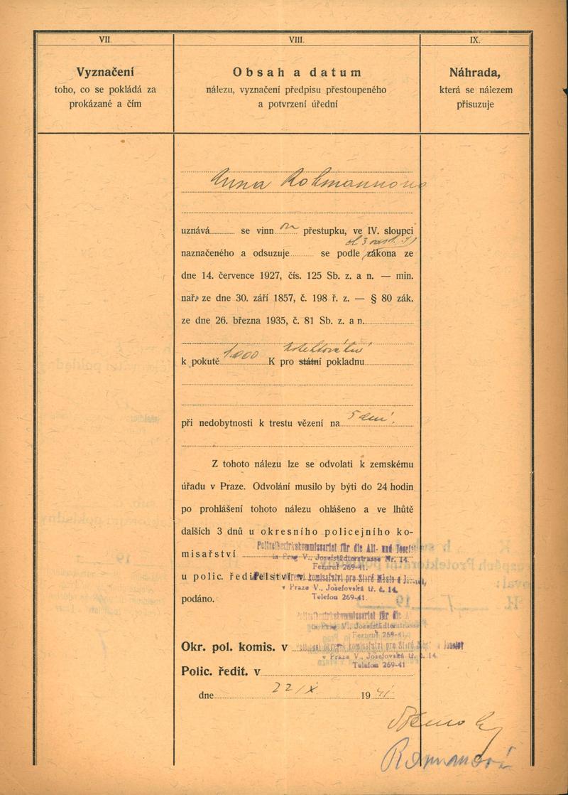 Národní archiv Praha > Policejní ředitelství v Praze > 1941-1950 > R > Rohmannová Anna