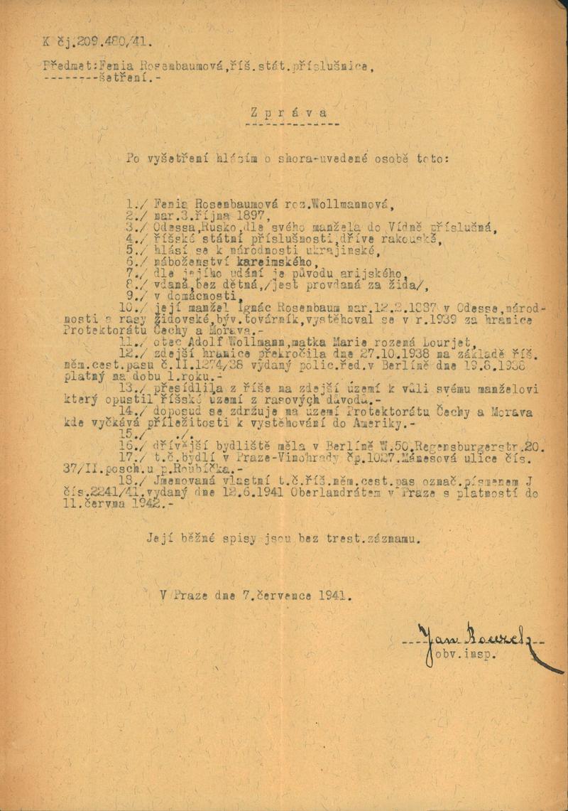 Rosenbaumová Fenia: NEZPRACOVÁNO
