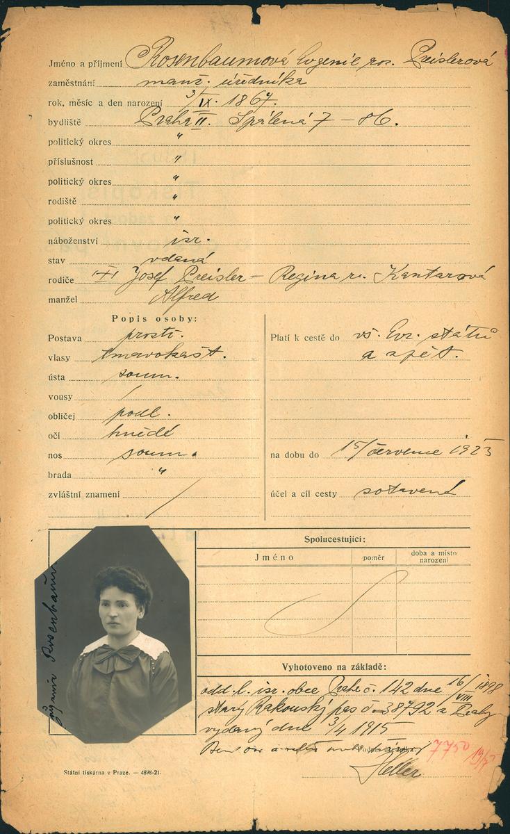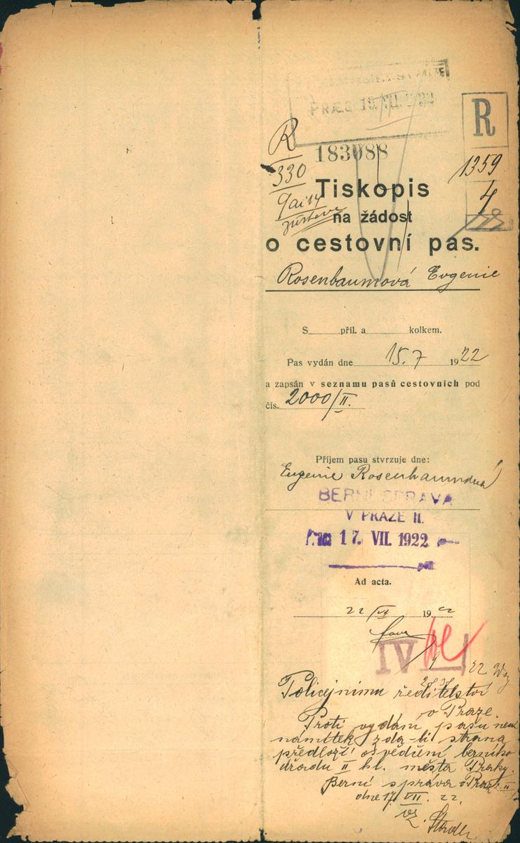 Národní archiv Praha > Policejní ředitelství v Praze > 1941-1950 > R > Rosenbaumová Evženie