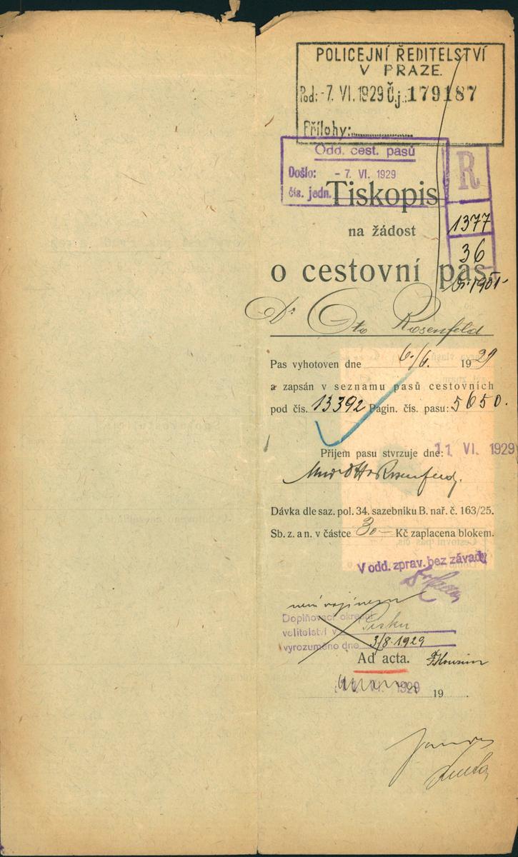 Národní archiv Praha > Policejní ředitelství v Praze > 1941-1950 > R > Rosenfeld Ota