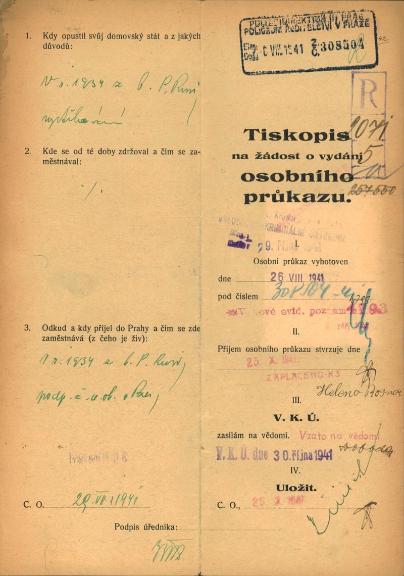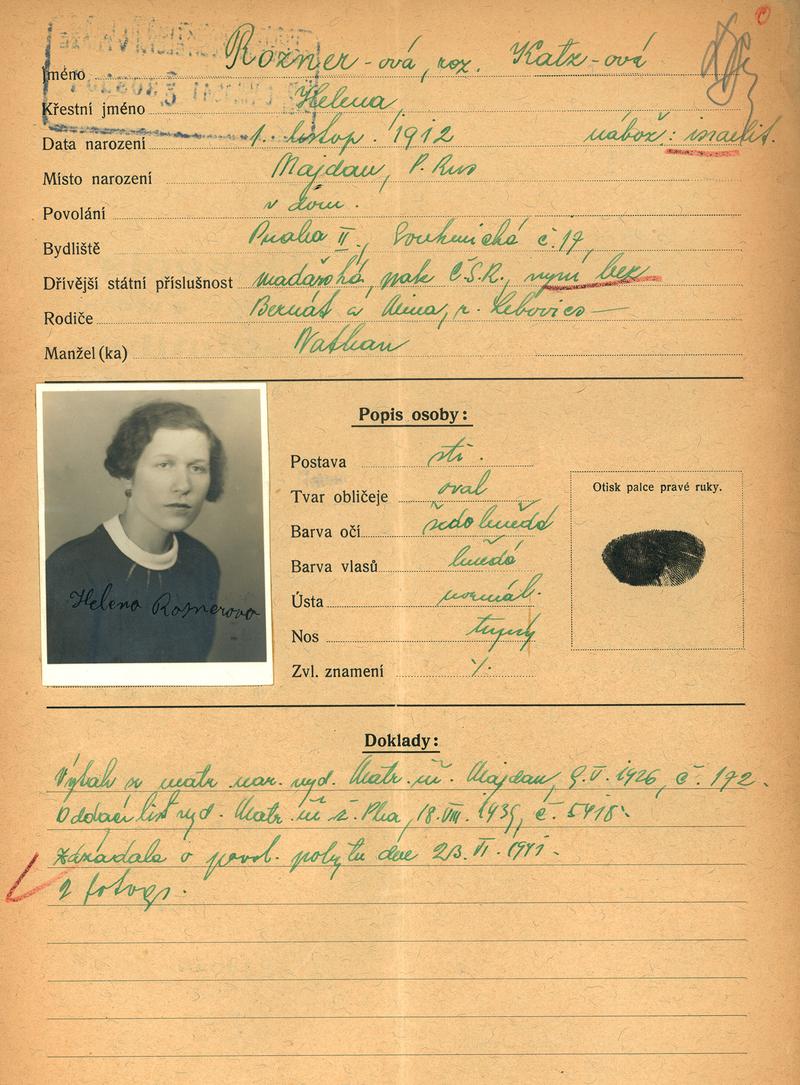 Národní archiv Praha > Policejní ředitelství v Praze > 1941-1950 > R > Rosnerová Helena