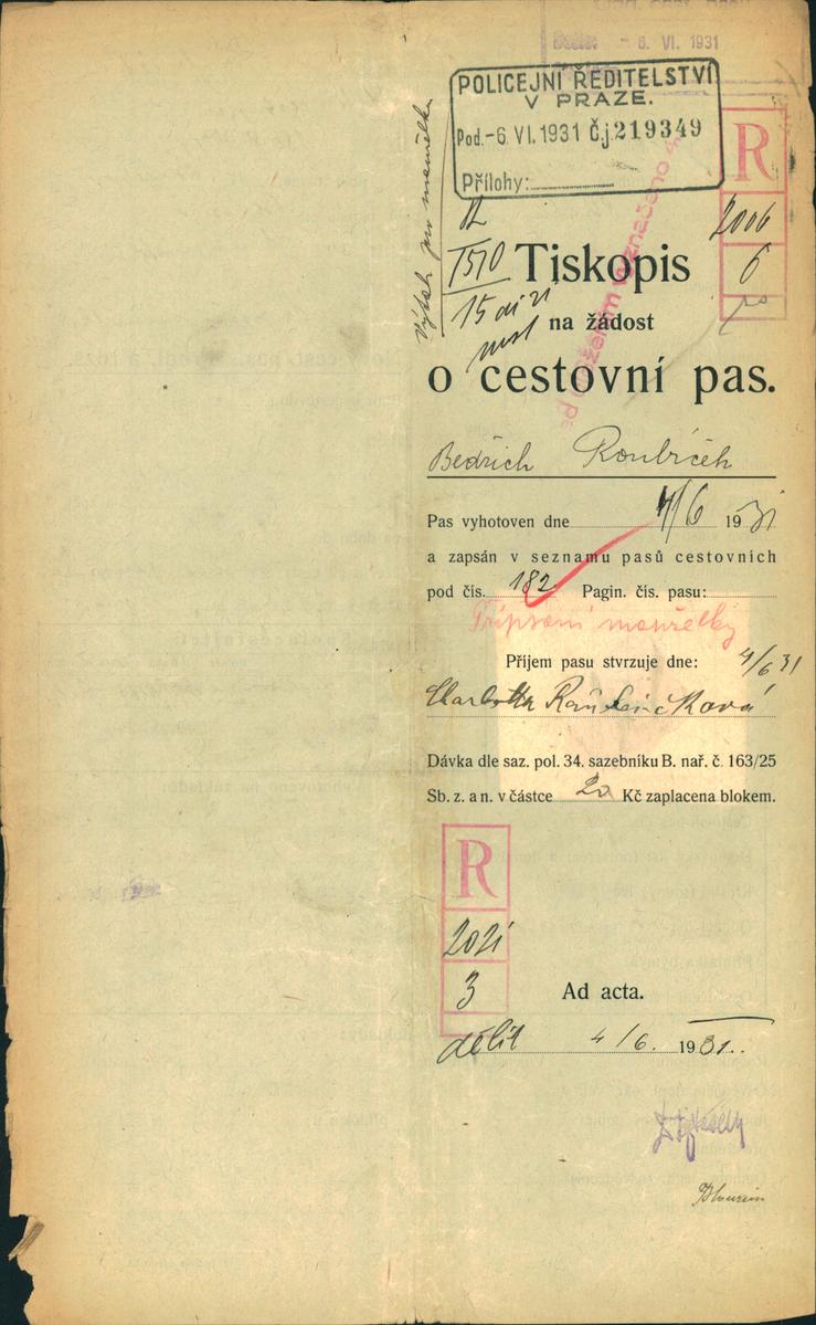 Roubitschek Bedřich: NEZPRACOVÁNO