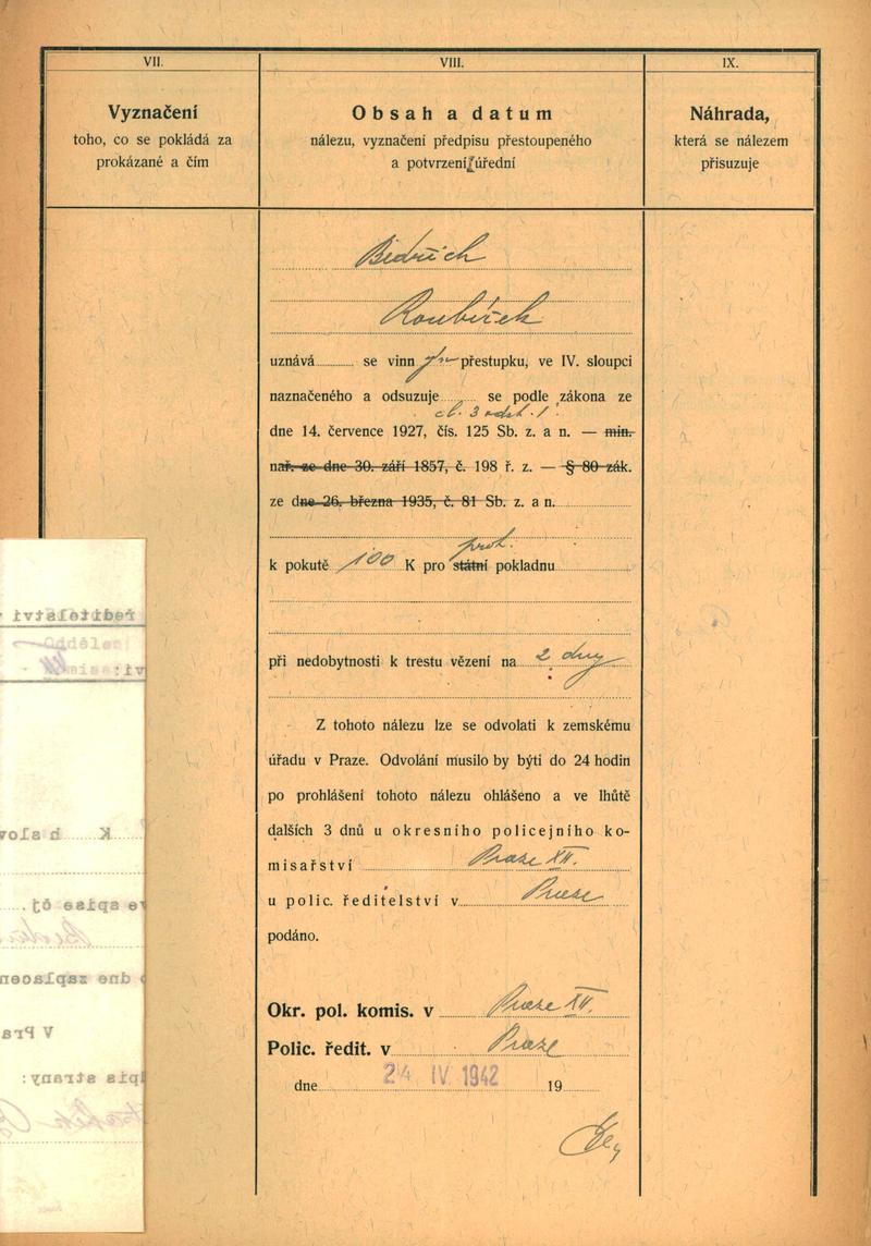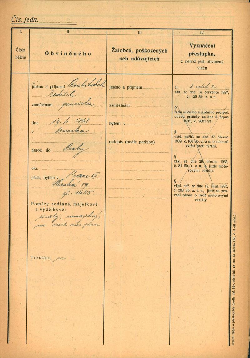 Národní archiv Praha > Policejní ředitelství v Praze > 1941-1950 > R > Roubitschek Bedřich