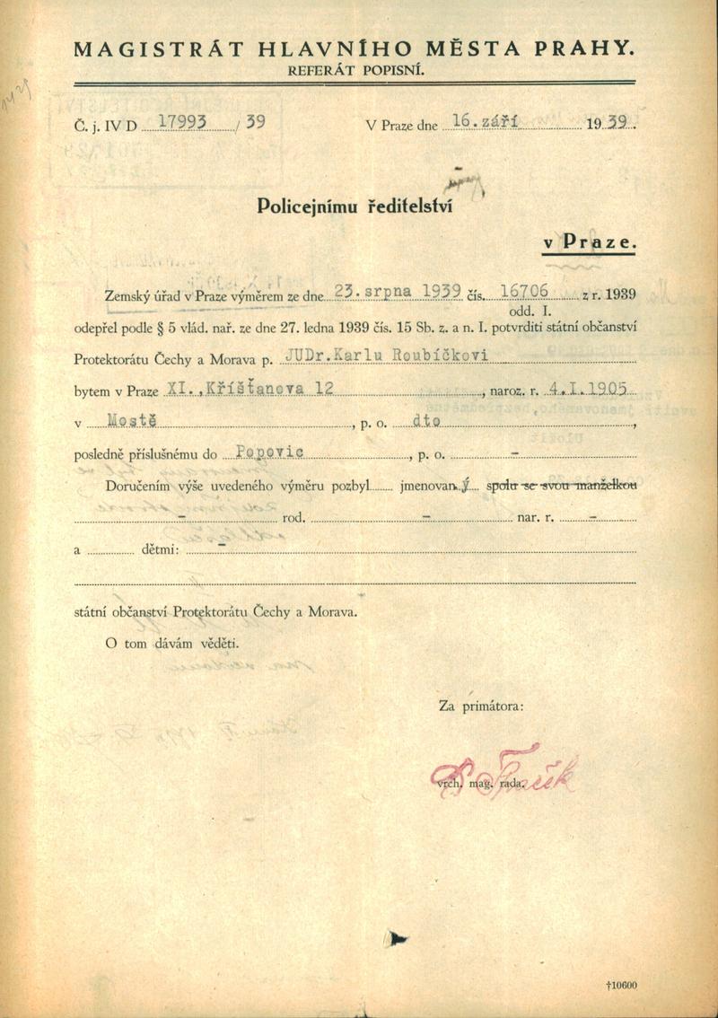 Národní archiv Praha > Policejní ředitelství v Praze > 1941-1950 > R > Roubiček Karel