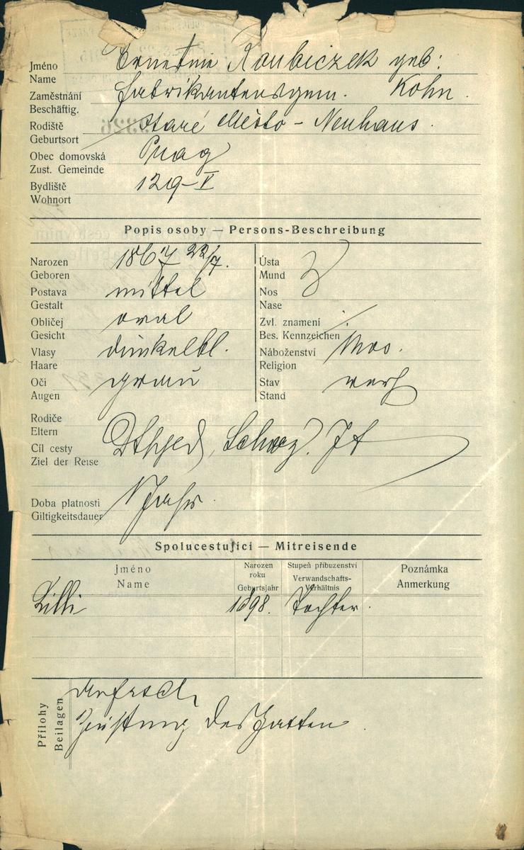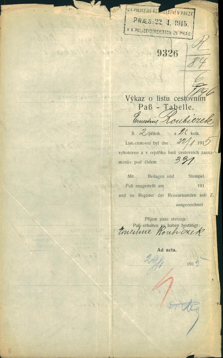 Národní archiv Praha > Policejní ředitelství v Praze > 1941-1950 > R > Roubiczková Arnoštka