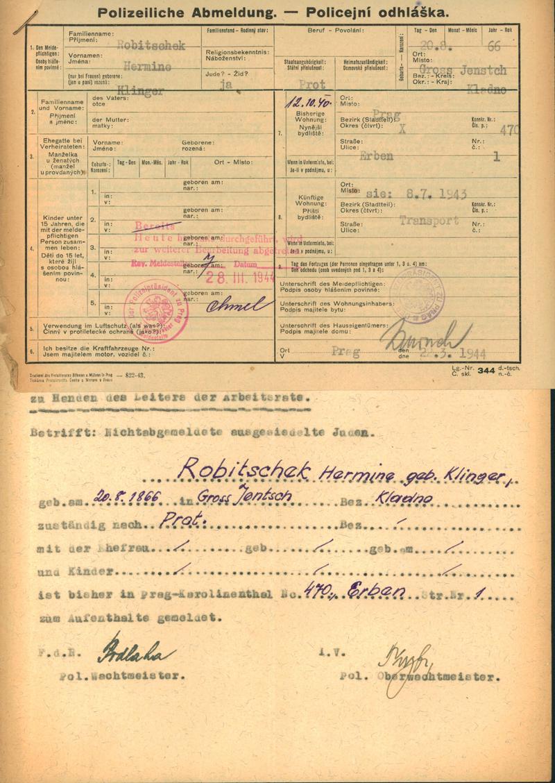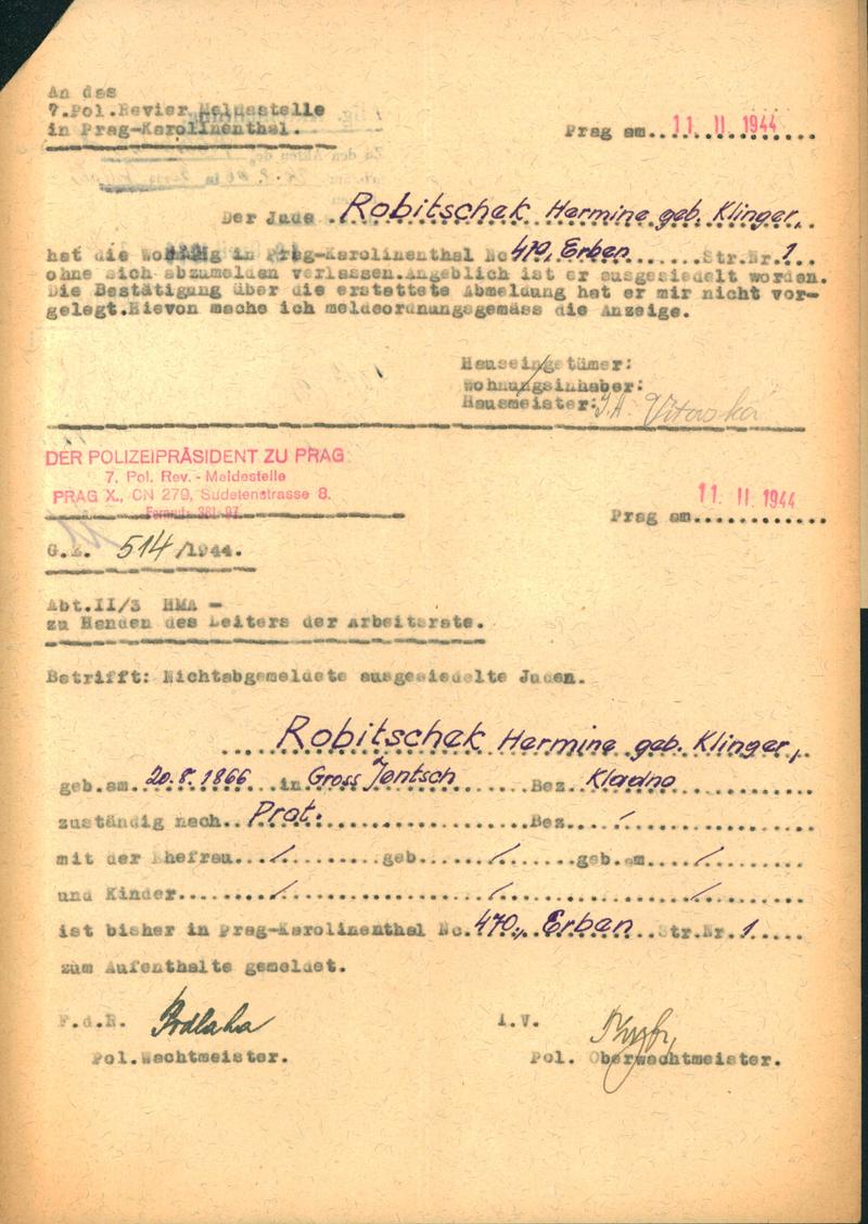 Národní archiv Praha > Policejní ředitelství v Praze > 1941-1950 > R > Robitschková Hermína