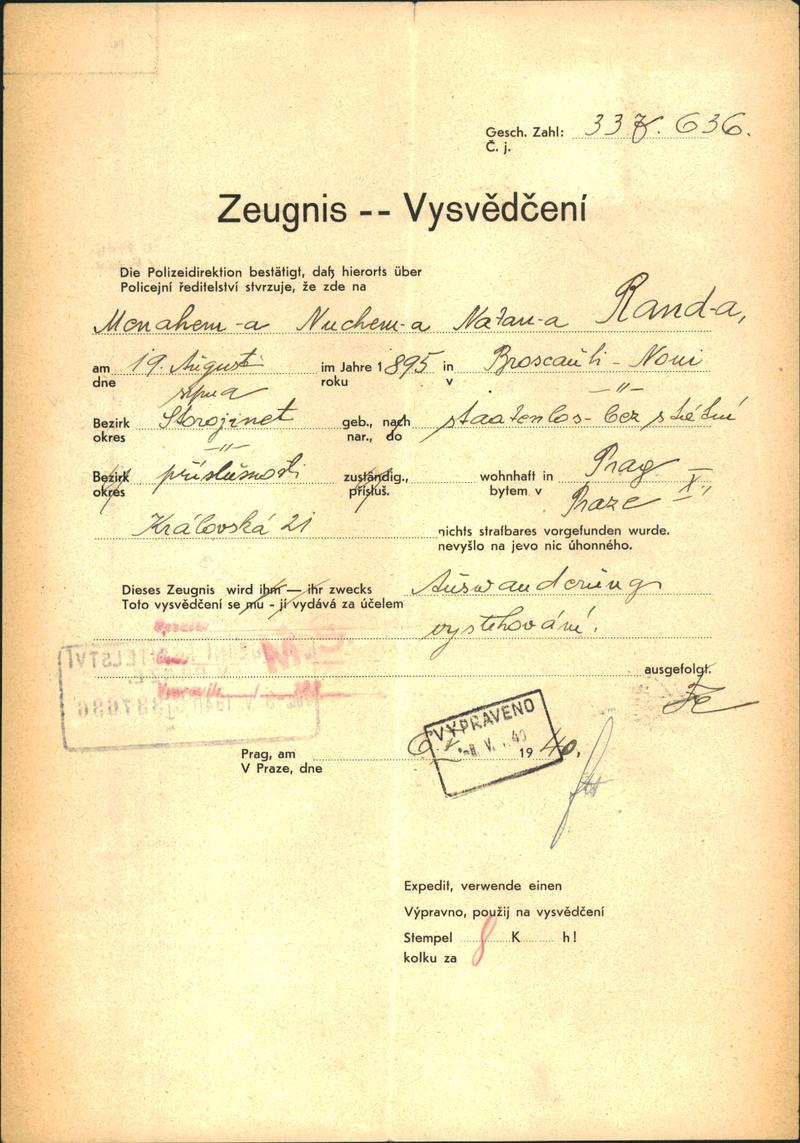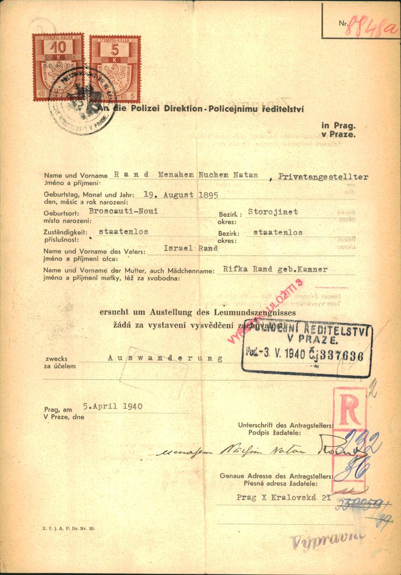 Národní archiv Praha > Policejní ředitelství v Praze > 1941-1950 > R > Rand Nathan