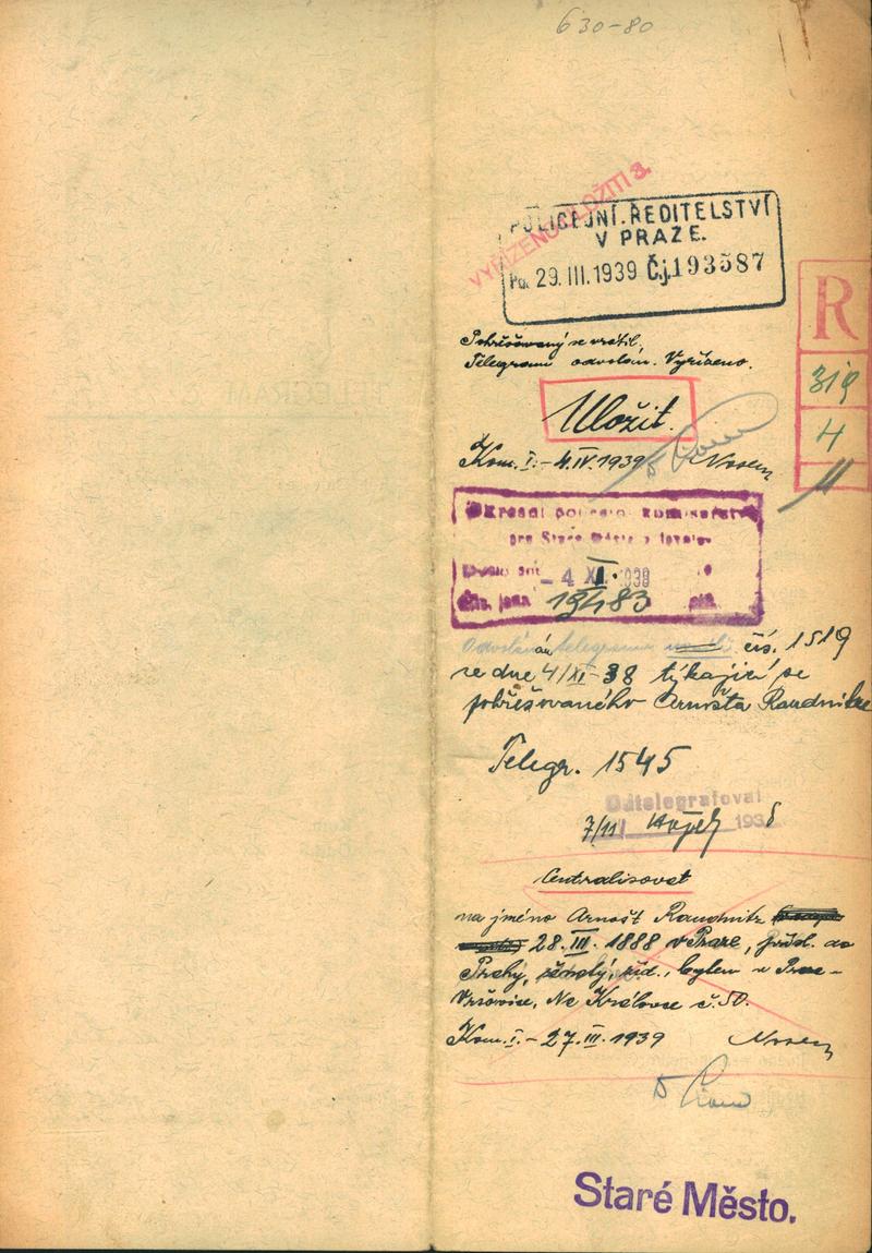 Národní archiv Praha > Policejní ředitelství v Praze > 1941-1950 > R > Raudnitz Arnošt