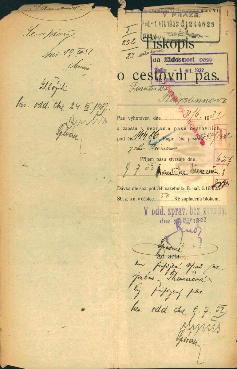Národní archiv Praha > Policejní ředitelství v Praze > 1941-1950 > R > Reimannová Františka