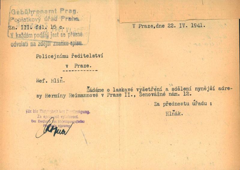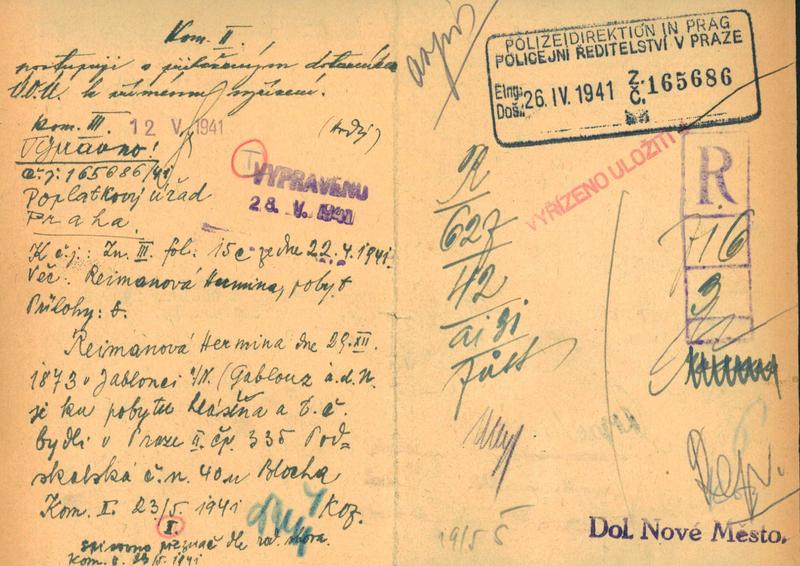 Národní archiv Praha > Policejní ředitelství v Praze > 1941-1950 > R > Reimannová Hermína