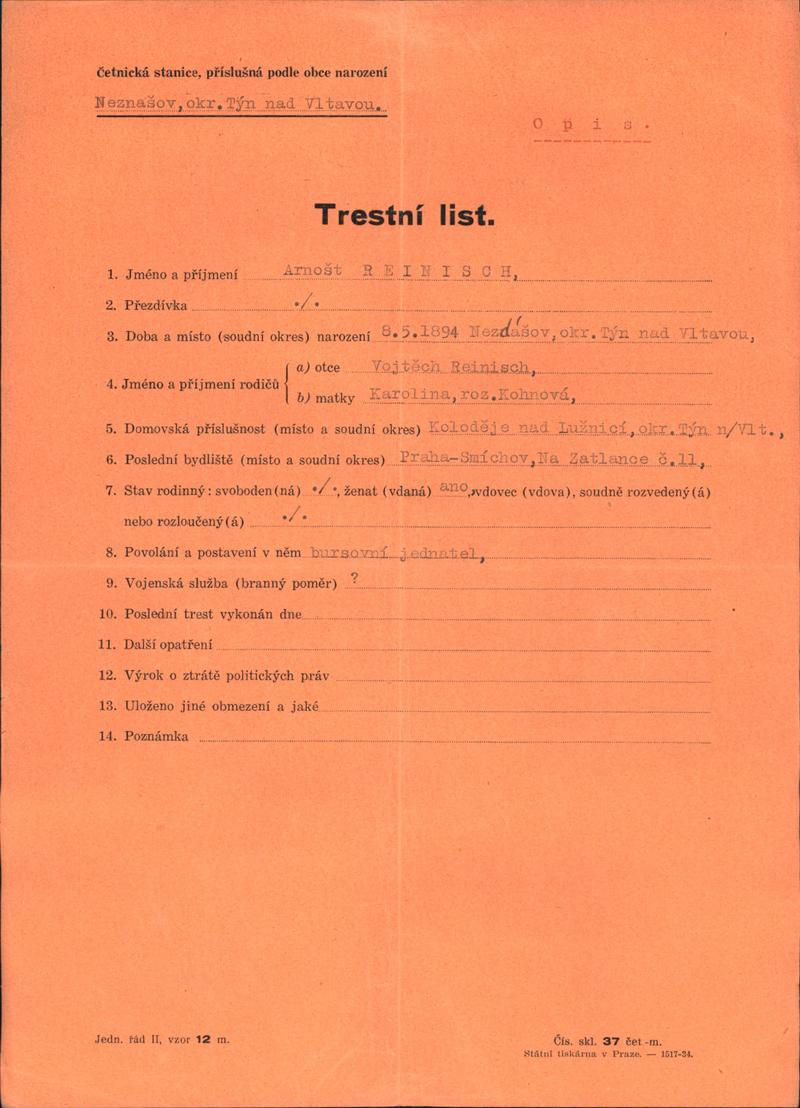 Národní archiv Praha > Policejní ředitelství v Praze > 1941-1950 > R > Reinisch Arnošt
