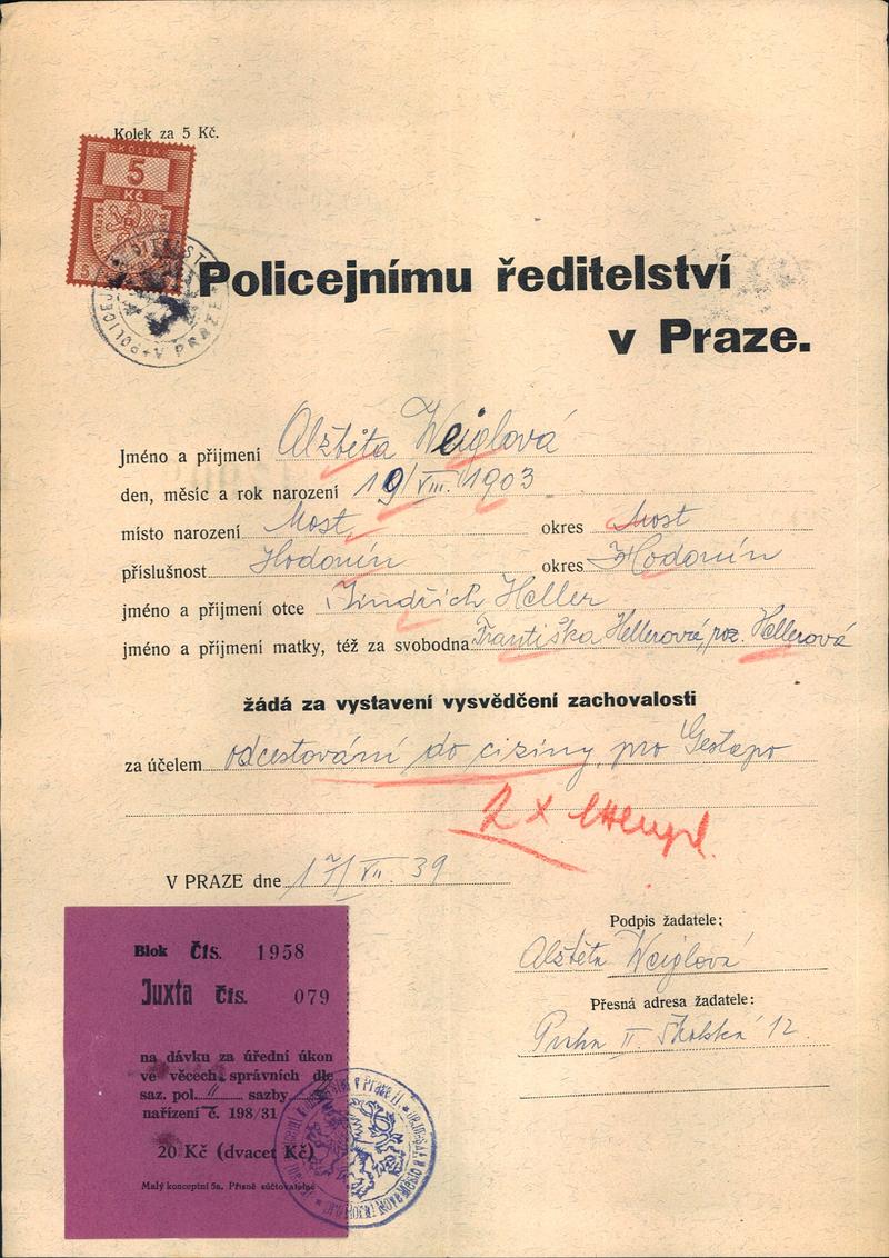 Národní archiv Praha > Policejní ředitelství v Praze > 1931-1940 > W > Weiglová Alžběta