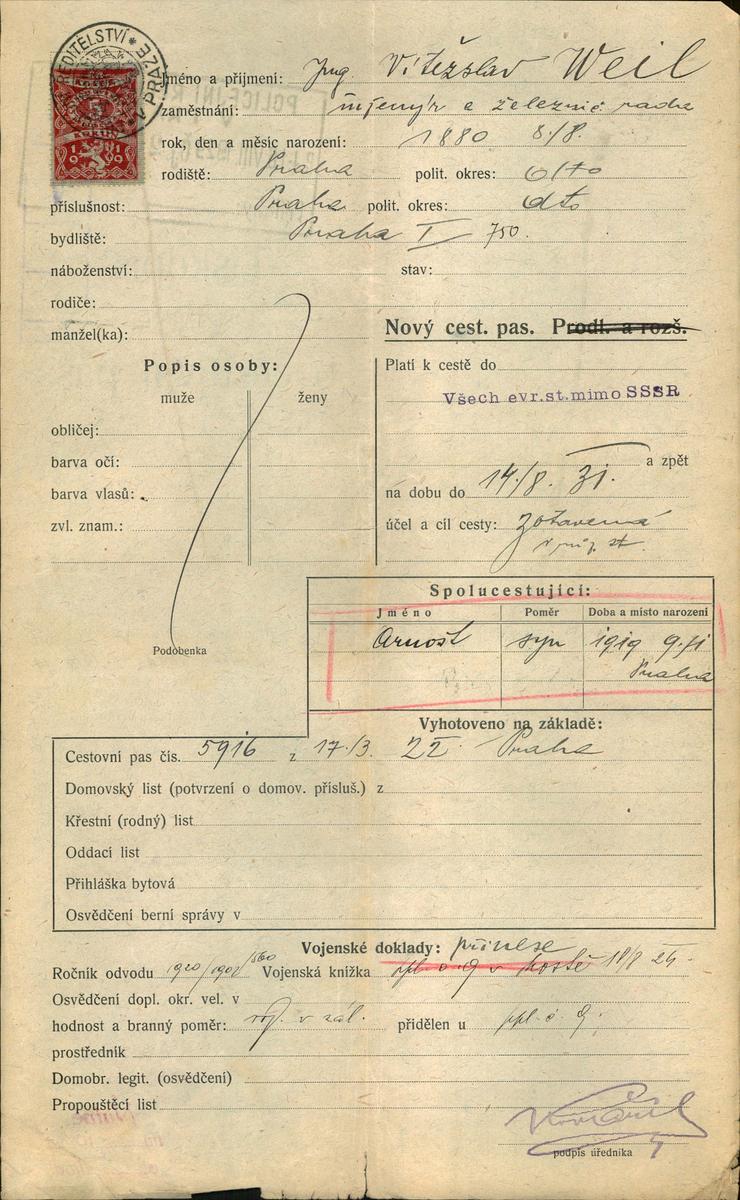 Národní archiv Praha > Policejní ředitelství v Praze > 1931-1940 > W > Weil Vítězslav