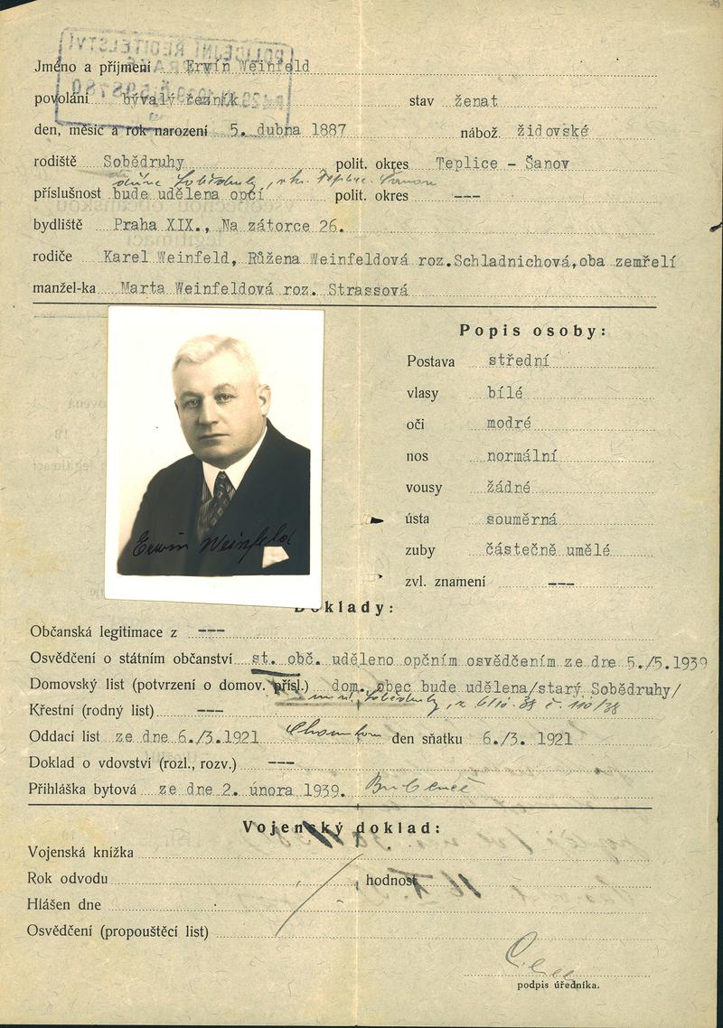 Národní archiv Praha > Policejní ředitelství v Praze > 1931-1940 > W > Weinfeld Ervín