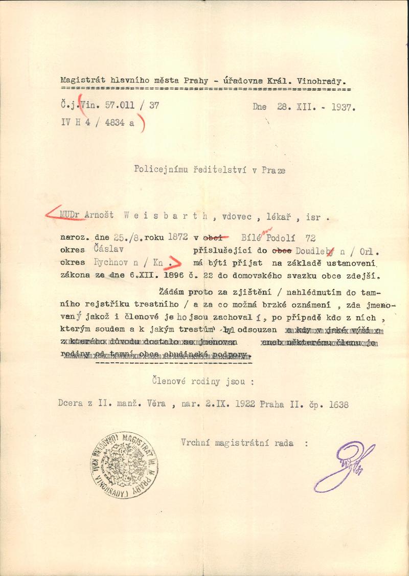 Weissbarth Arnošt: NEZPRACOVÁNO