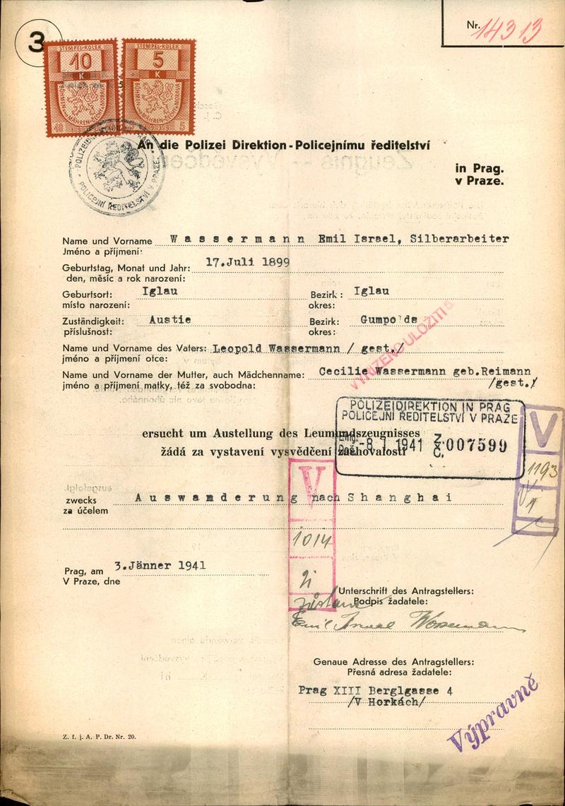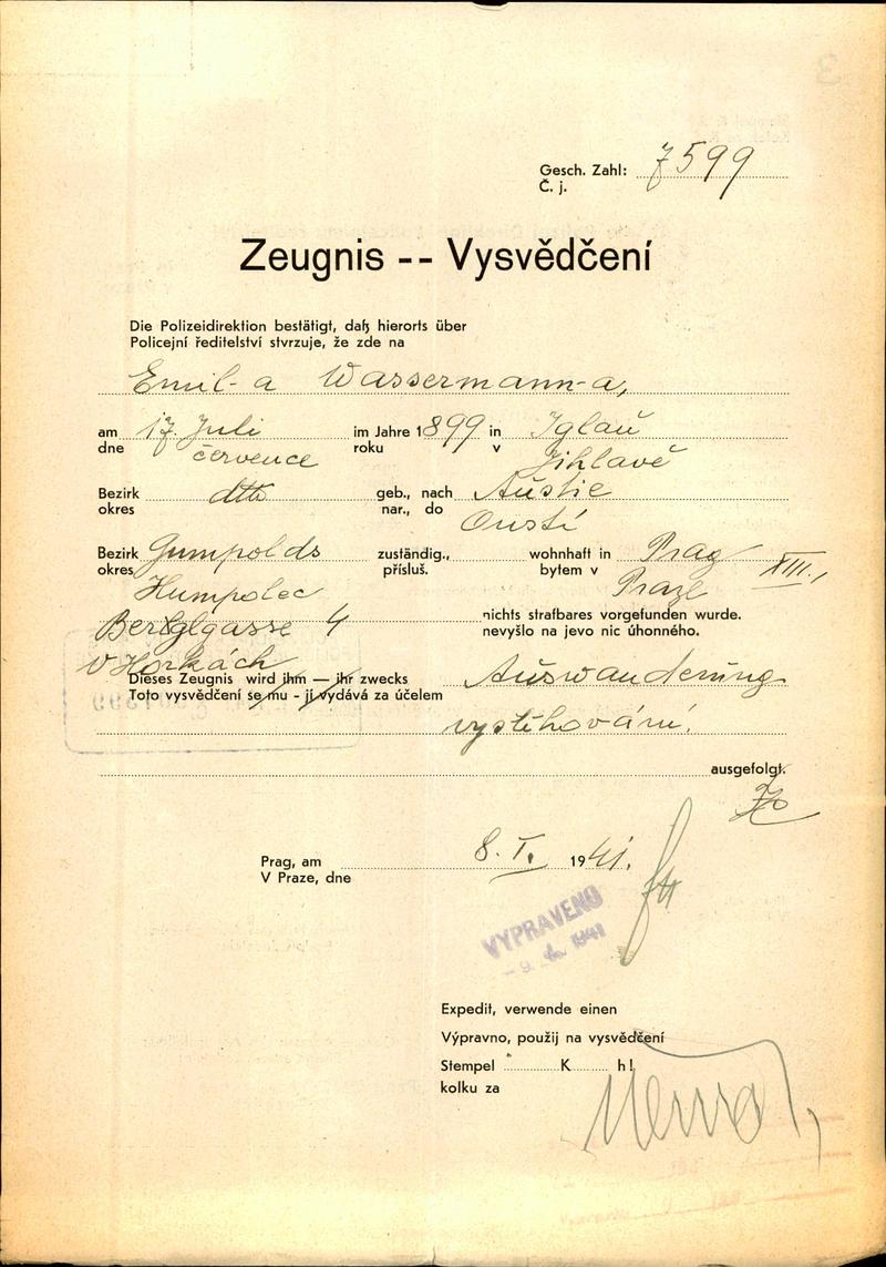 Národní archiv Praha > Policejní ředitelství v Praze > 1941-1950 > W > Wassermann Emil