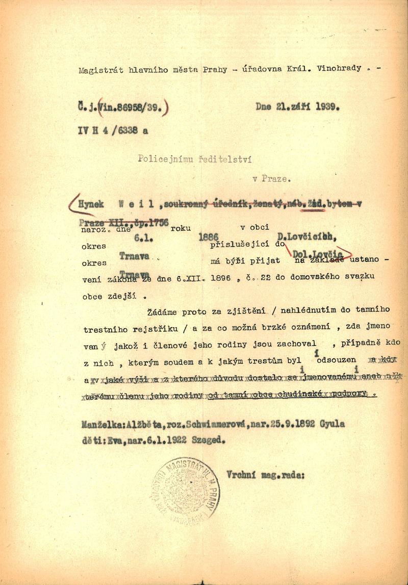 Národní archiv Praha > Policejní ředitelství v Praze > 1941-1950 > W > Weil Ignác