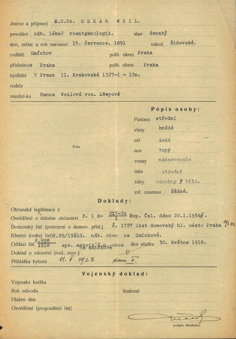 Národní archiv Praha > Policejní ředitelství v Praze > 1941-1950 > W > Weil Oskar