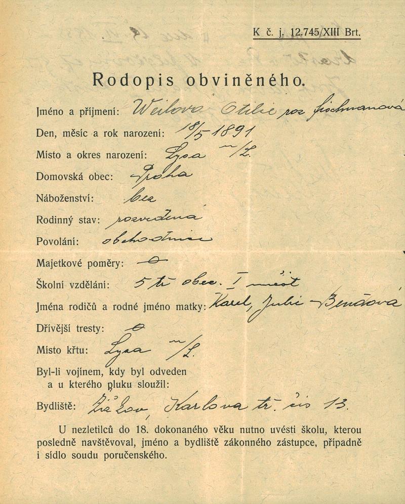 Národní archiv Praha > Policejní ředitelství v Praze > 1941-1950 > W > Weilová Otilie