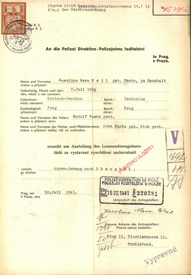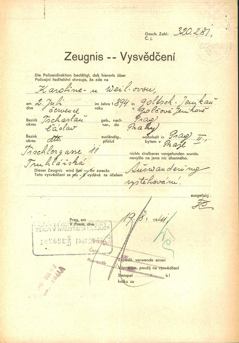 Národní archiv Praha > Policejní ředitelství v Praze > 1941-1950 > W > Weilová Karolina