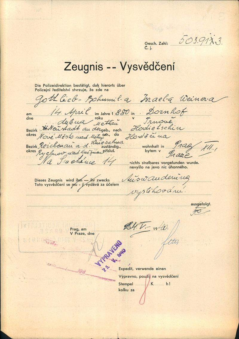 Národní archiv Praha > Policejní ředitelství v Praze > 1941-1950 > W > Weiner Bohumil