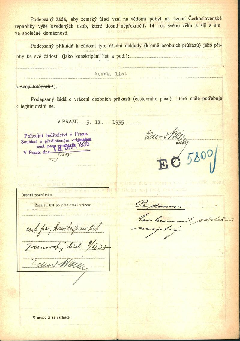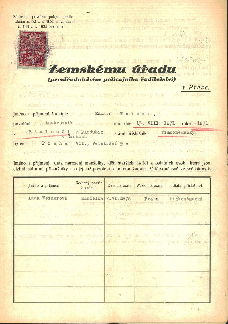 Národní archiv Praha > Policejní ředitelství v Praze > 1941-1950 > W > Weiner Eduard