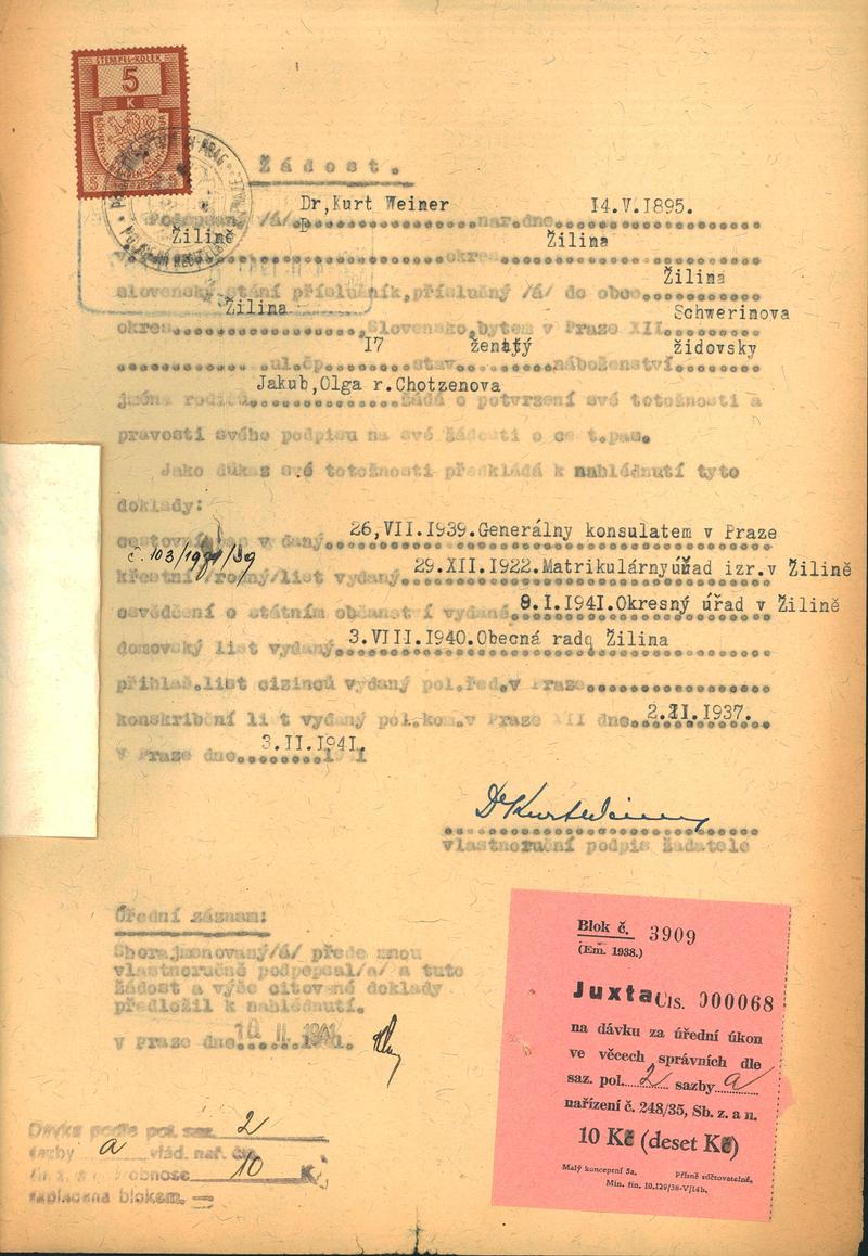 Národní archiv Praha > Policejní ředitelství v Praze > 1941-1950 > W > Weiner Kurt