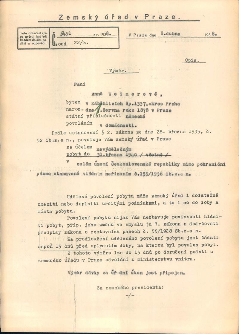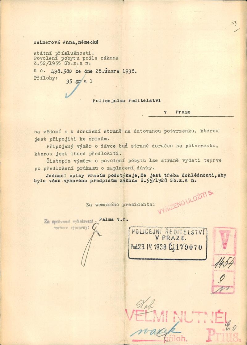 Národní archiv Praha > Policejní ředitelství v Praze > 1941-1950 > W > Weinerová Anna