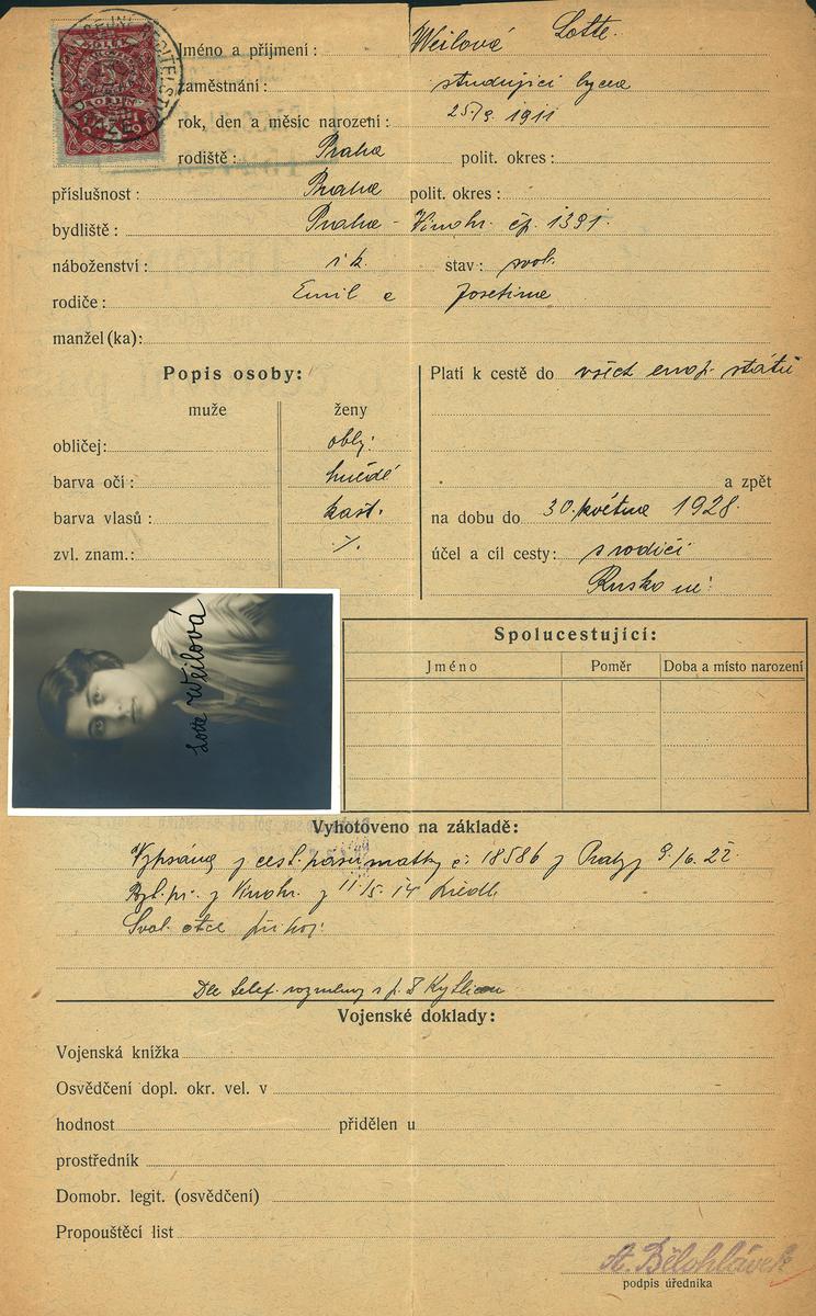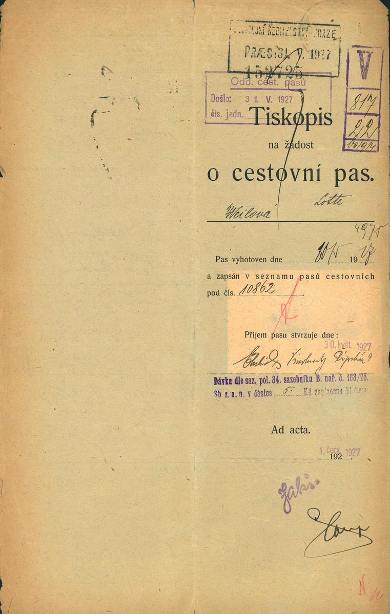 Národní archiv Praha > Policejní ředitelství v Praze > 1941-1950 > W > Weinerová Lota