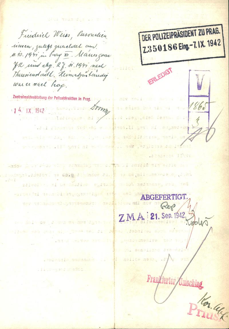 Národní archiv Praha > Policejní ředitelství v Praze > 1941-1950 > W > Weiss Bedřich